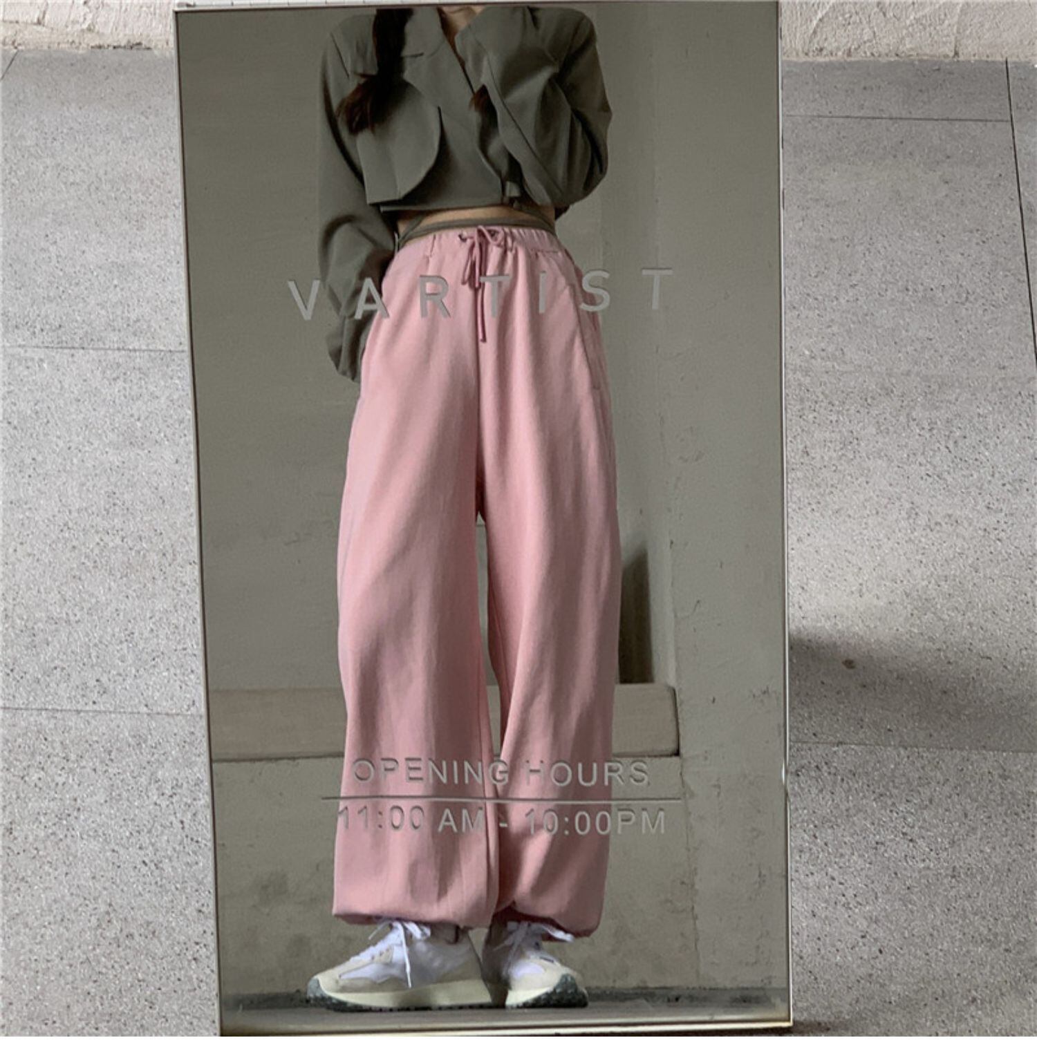 パンツ レディース韓国ファッショントレンド秋物ウィンター厚みルーズハイウェストウェスト ピンク オータム 冬物 スタイル ウエスト デーモン93230833237