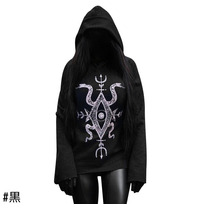 ダークブラックセーター ワンピースレディース秋物ウィンターウェストフードプリント柄 ロング オータム 冬物 スカート 長袖 ウエスト YU29933688648