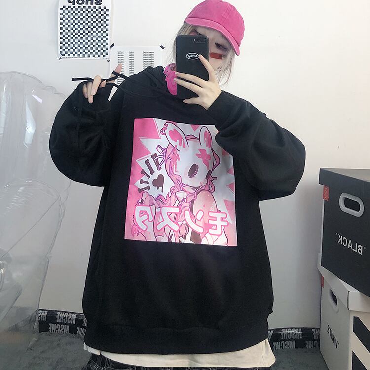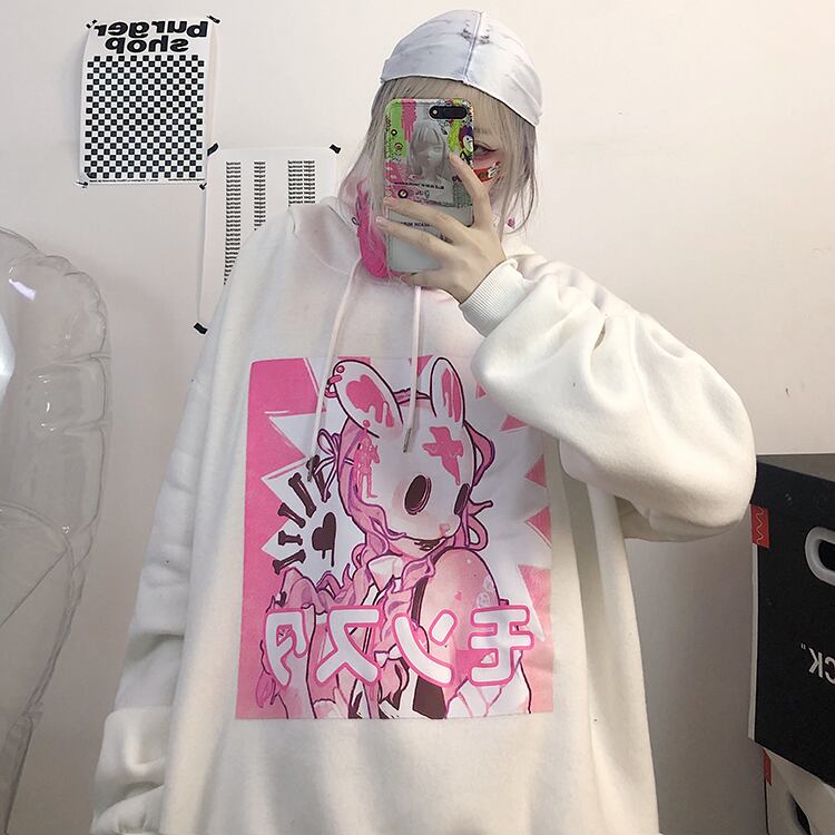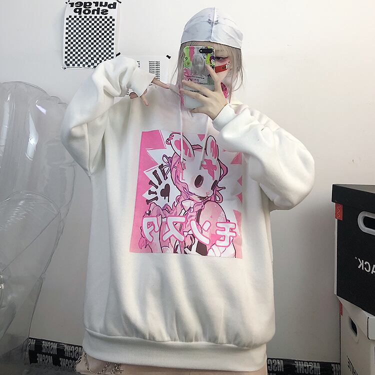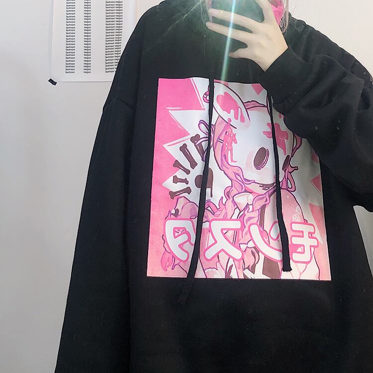 秋物ウィンターセーター レディース韓国ファッショントレンドプリント柄ルーズフードジャケット ピンク オータム 冬物 スタイル デーモン10888204583