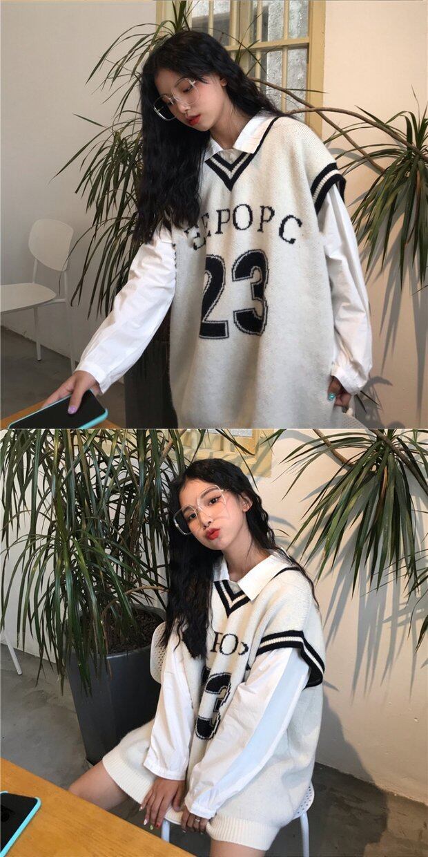 韓国ファッショントレンドショートシャツ Vネックセーター ロング スタイル 長袖 デーモン46141082883