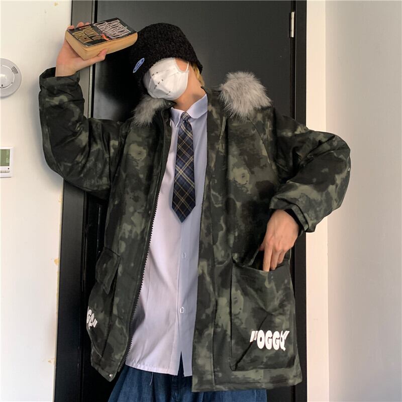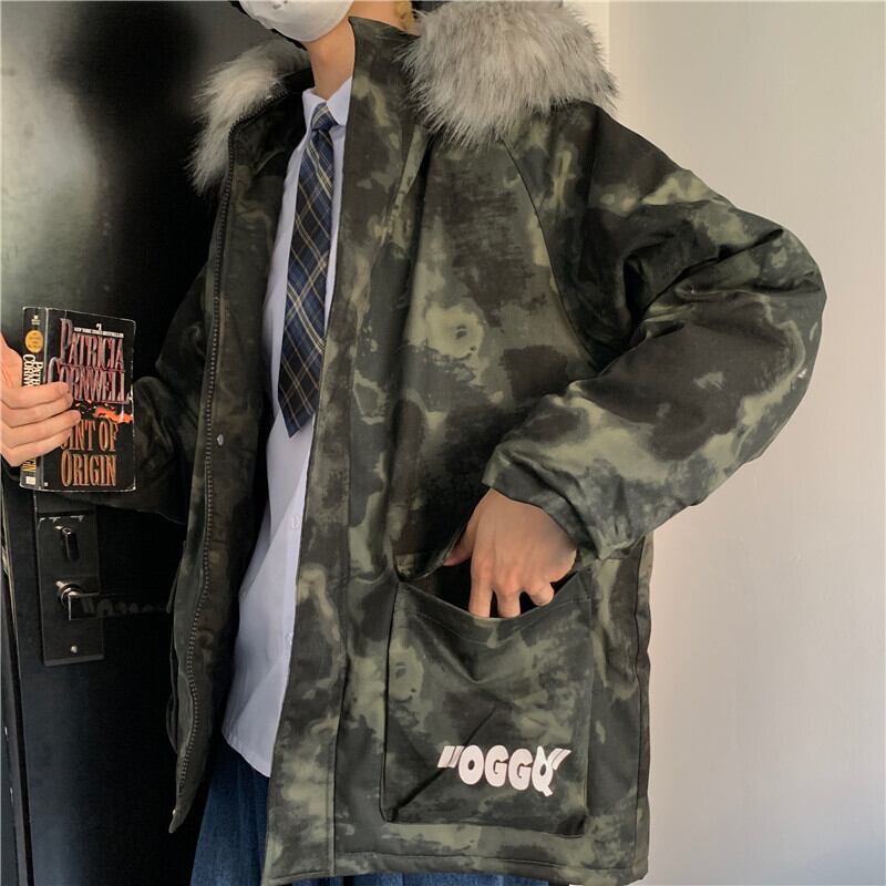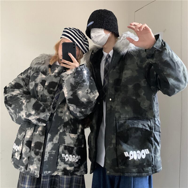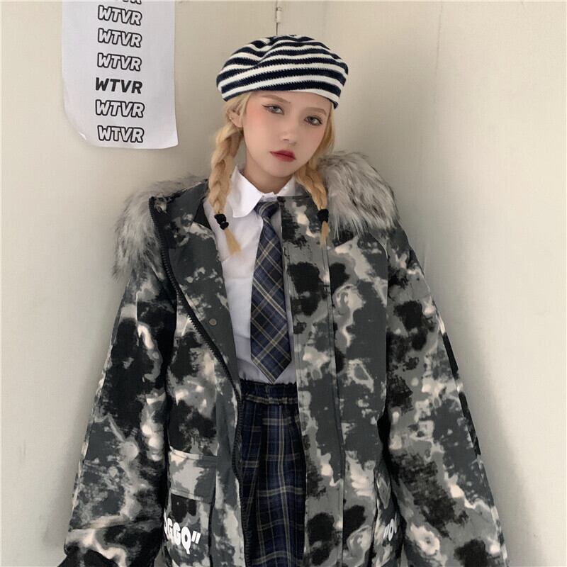 ジャケット ウィンター韓国ファッショントレンドルーズファーカラー迷彩柄 コットン 冬物 スタイル デーモン37456820609
