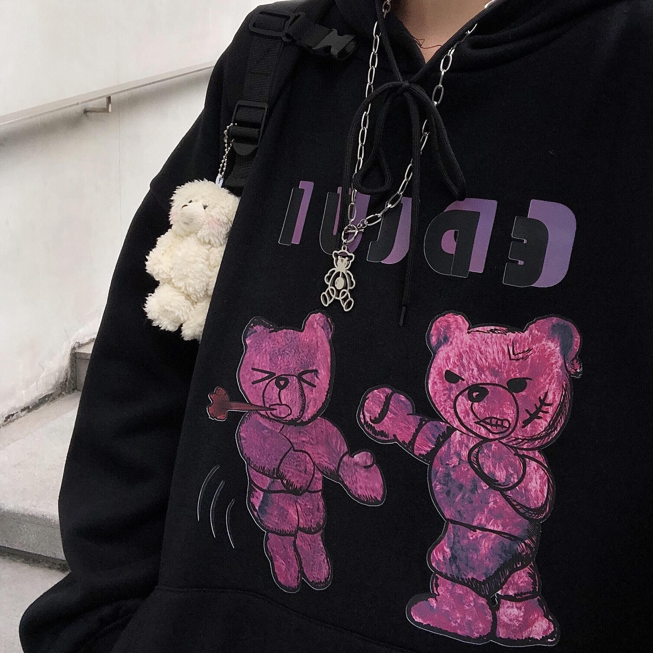フードセーター レディース秋物ウィンター韓国ファッショントレンドダークプリント柄ルーズ厚みジャケット オータム 冬物 ボーイズ スタイル デーモン50197369893