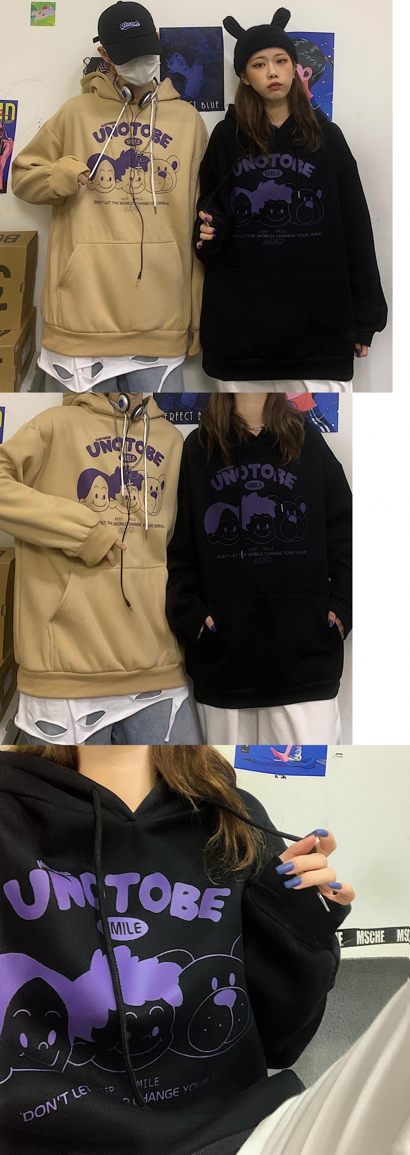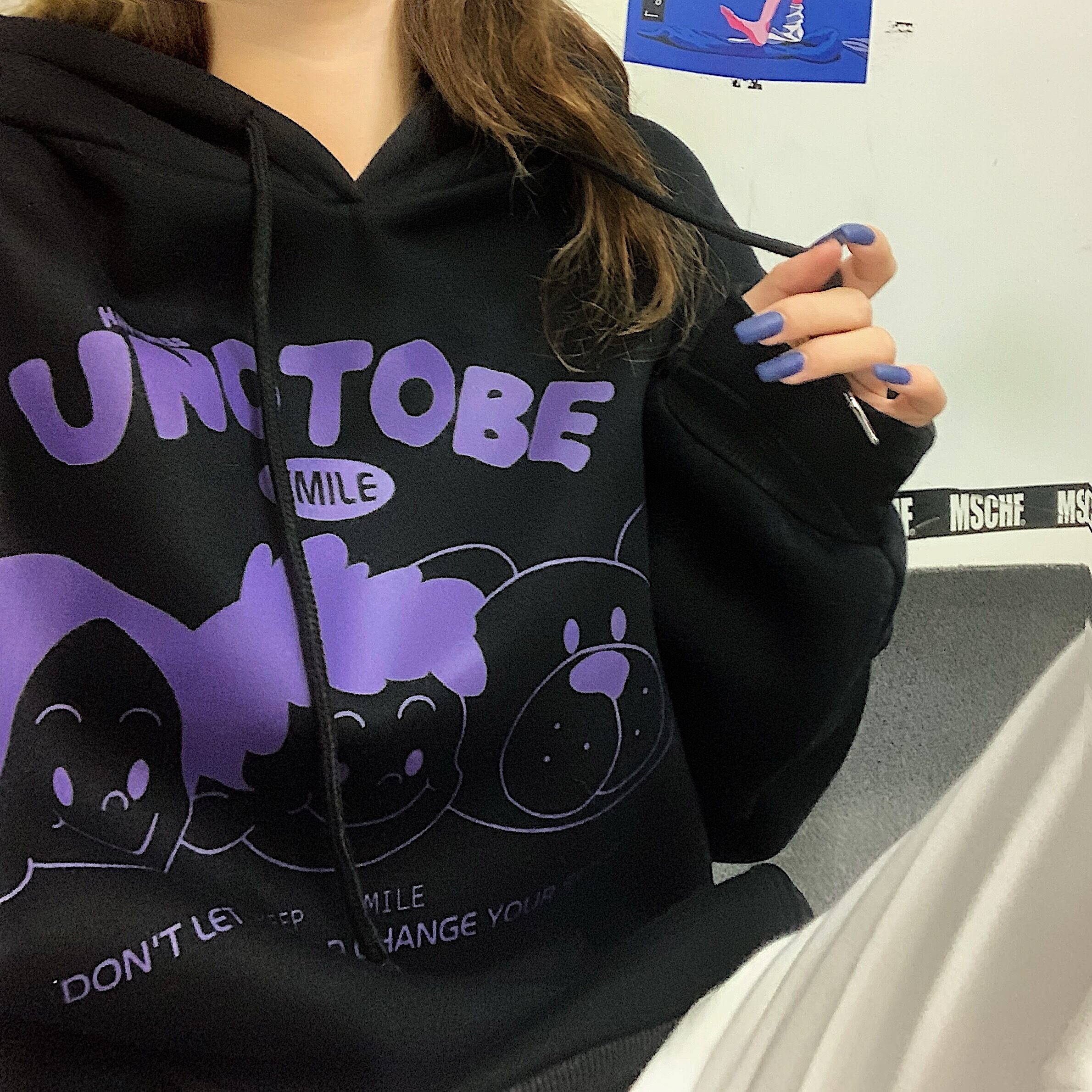 セーター レディース韓国ファッショントレンドプリントルーズ厚みフードジャケット オータム 秋物 ウィンター 冬物 ボーイズ スタイル デーモン55777727024