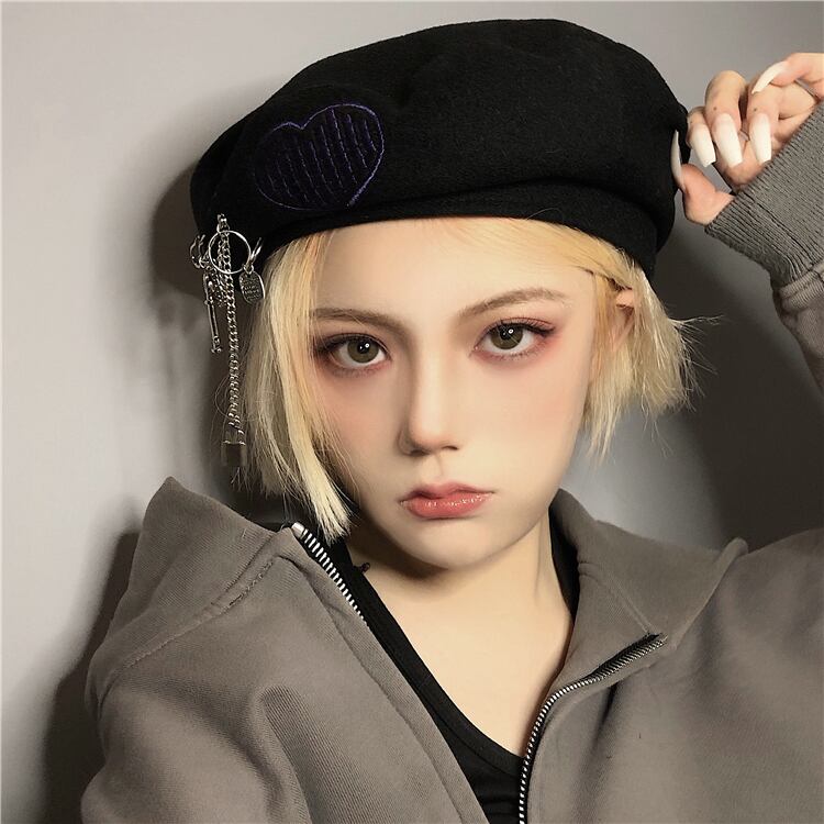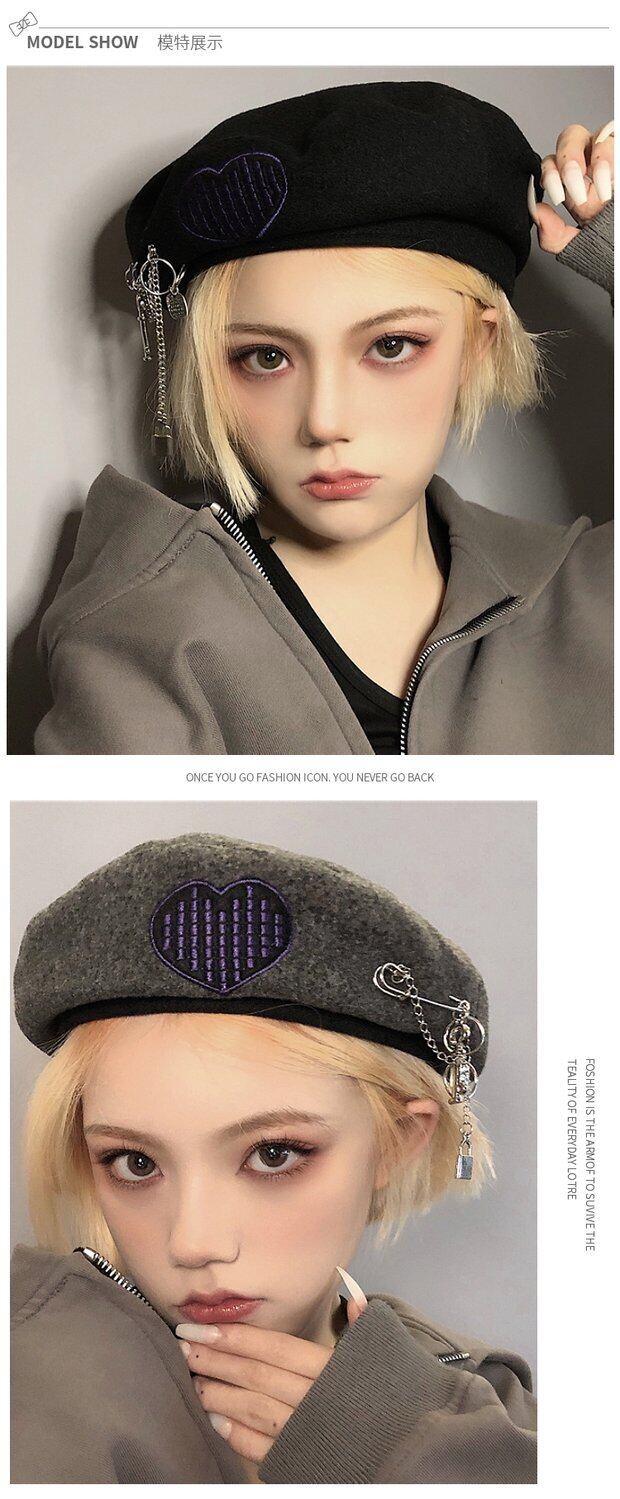 レディース秋物ウィンター韓国ファッショントレンドスタンダード刺繍キャップ レトロ オータム 冬物 ベレット ヘアアクセサリー スタイル デーモン59241703051