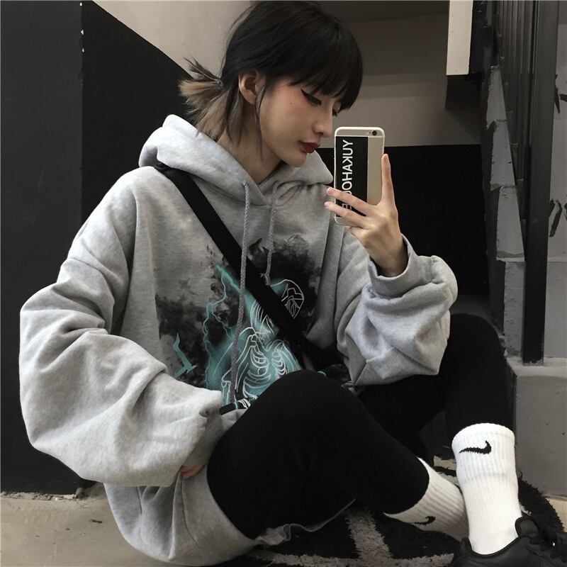 フードセーター レディース秋物ウィンター韓国ファッショントレンドダーク厚みルーズコート オータム 冬物 ボーイズ スタイル デーモン11720535534