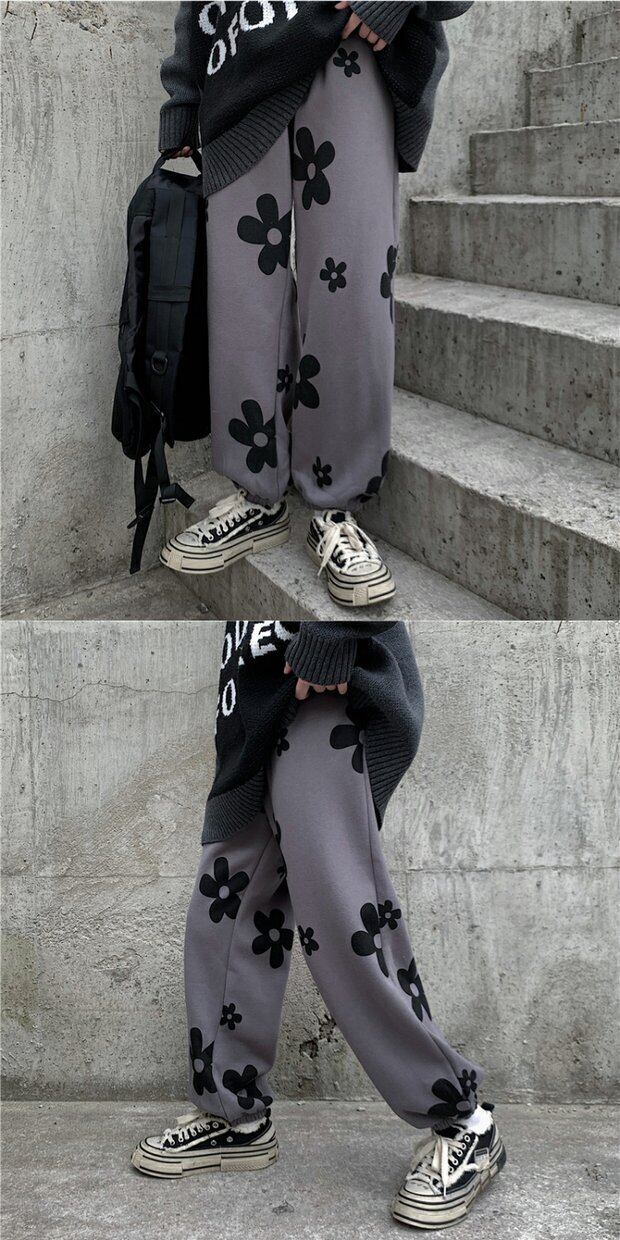 パンツ 秋物ウィンター韓国ファッショントレンド厚みルーズ オータム 冬物 フラワーデザイン スタイル デーモン46965608543