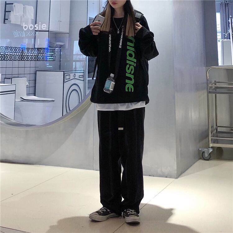 セーター レディース秋物ウィンター韓国ファッショントレンドプリントルーズブラックラウンドネックゆったりシャツ ジャケット オータム 冬物 Oネック スタイル デーモン78229933064