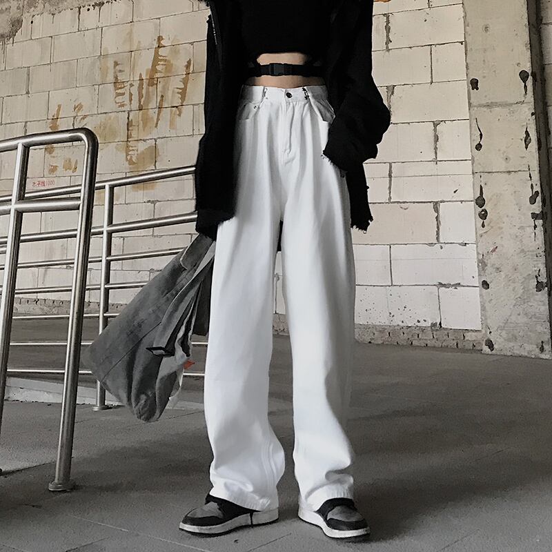 ホワイトジーンズ レディース秋物ウィンター韓国ファッショントレンドハイウェストウェストルーズカジュアルパンツ オータム 冬物 ボーイズ スタイル ウエスト デーモン19063186042