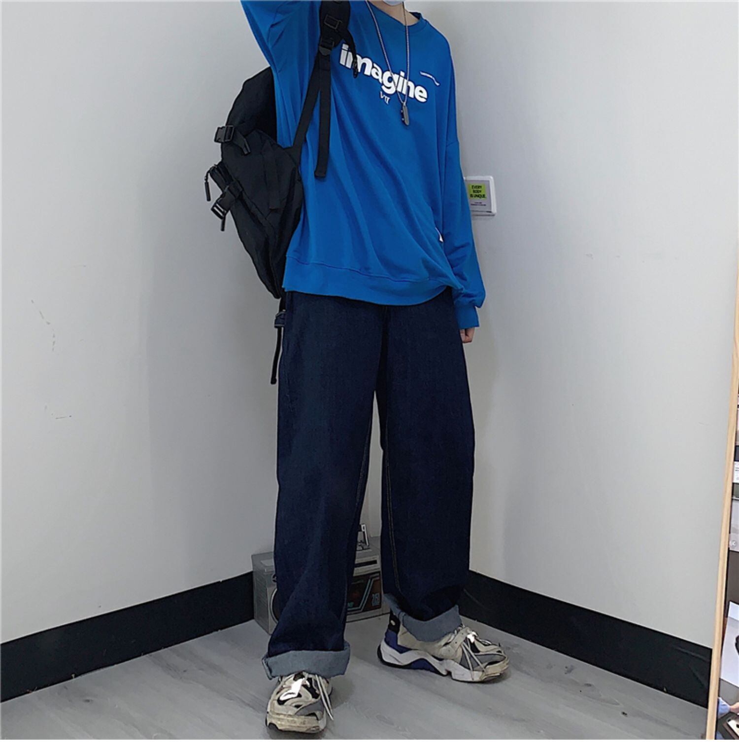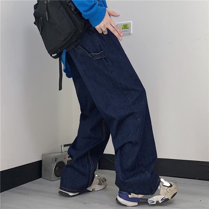 ウェストワイドレッグパンツ レディース秋物ウィンター韓国ファッショントレンドダークブルールーズカジュアル オータム 冬物 ワイドパンツ スタイル ウエスト デーモン46763733040