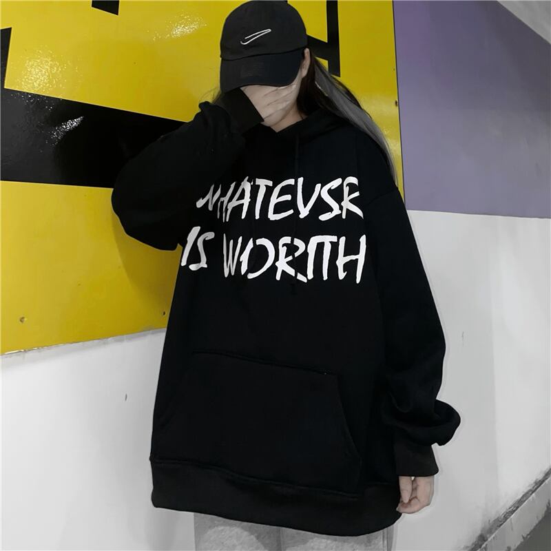 秋物ウィンタージャケット レディース韓国ファッショントレンドプリント柄厚みルーズホワイトフードセーター オータム 冬物 ボーイズ デーモン53369096936