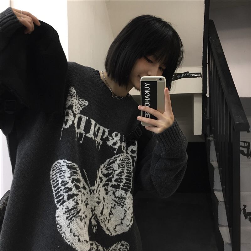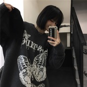 セーター レディース秋物ウィンター韓国ファッショントレンドButterflyデザイン ジャカードラウンドネックルーズコート オータム 冬物 Oネック スタイル デーモン97477465598