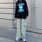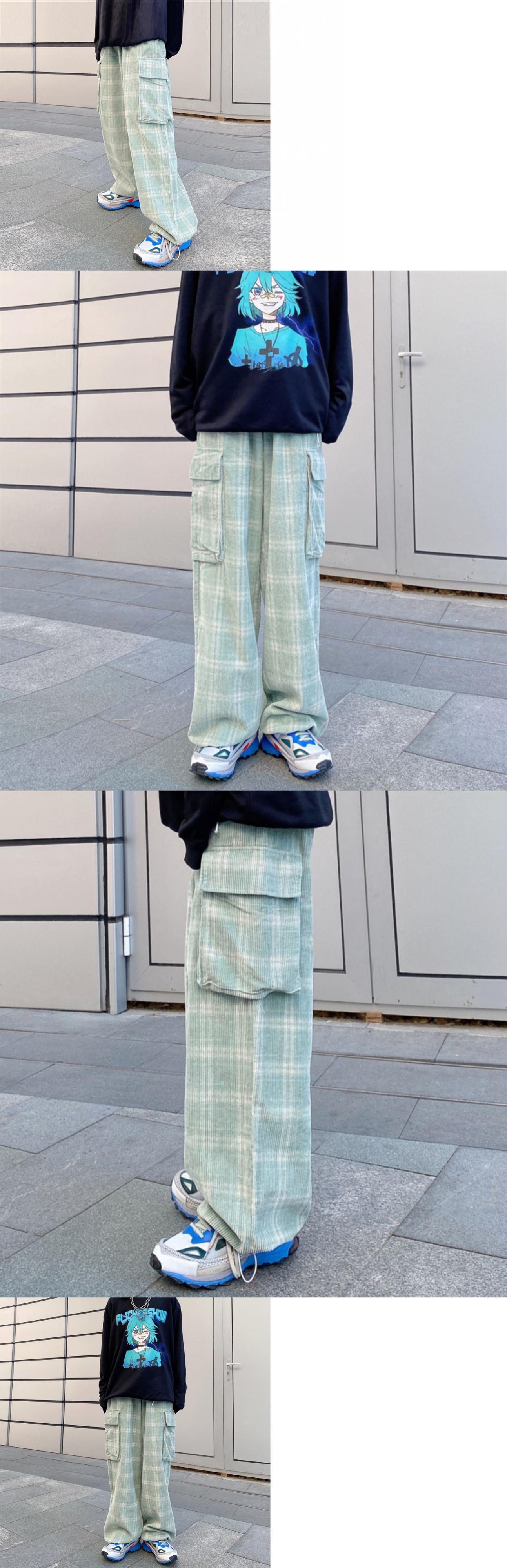 パンツ秋物ウィンター韓国ファッショントレンドコーデュロイ格子柄パンツ ルーズカジュアル オータム 冬物 スタイル デーモン15225041873