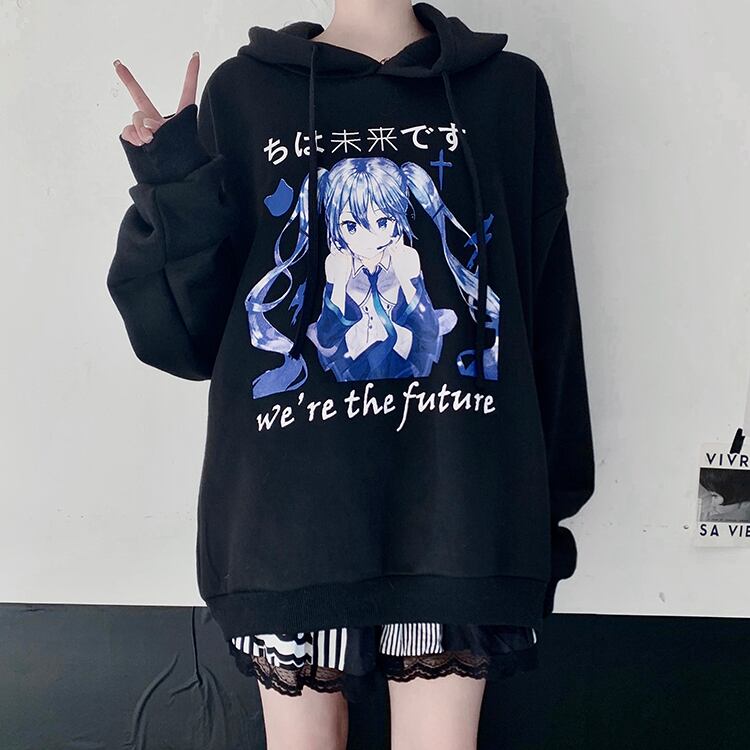 フードセーター レディース秋物ウィンター韓国ファッショントレンドプリント柄厚みルーズコート オータム 冬物 ボーイズ スタイル デーモン31164997685