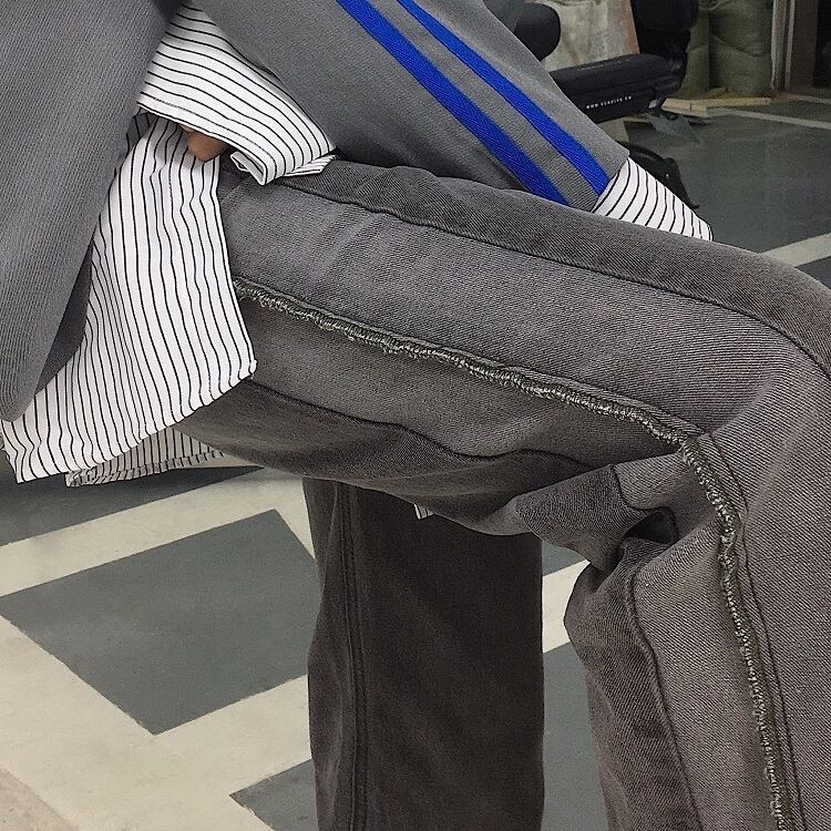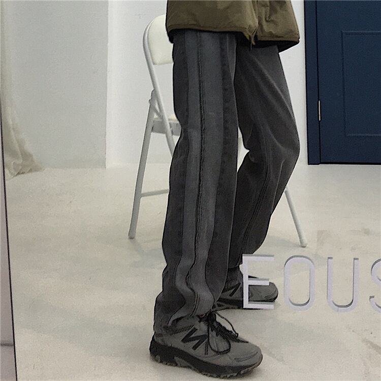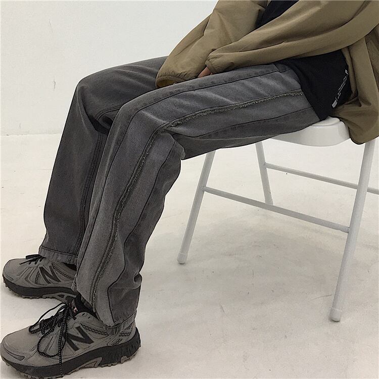 パンツ 秋物ウィンター韓国ファッショントレンドスタンダードグレー薄手ジーンズ ルーズハイウェストウェストカジュアル レトロ オータム 冬物 スモーキー ステッチ スタイル ウエスト デーモン18429717079