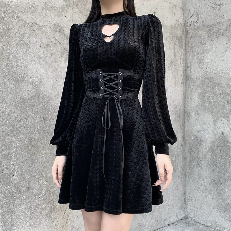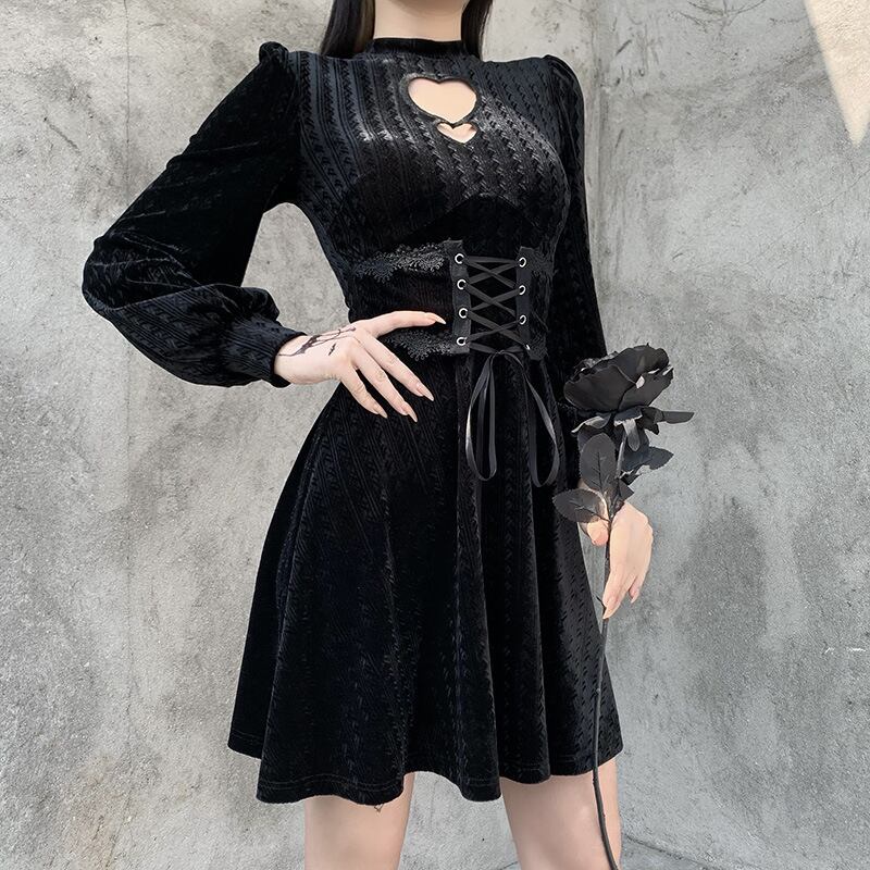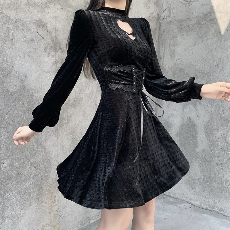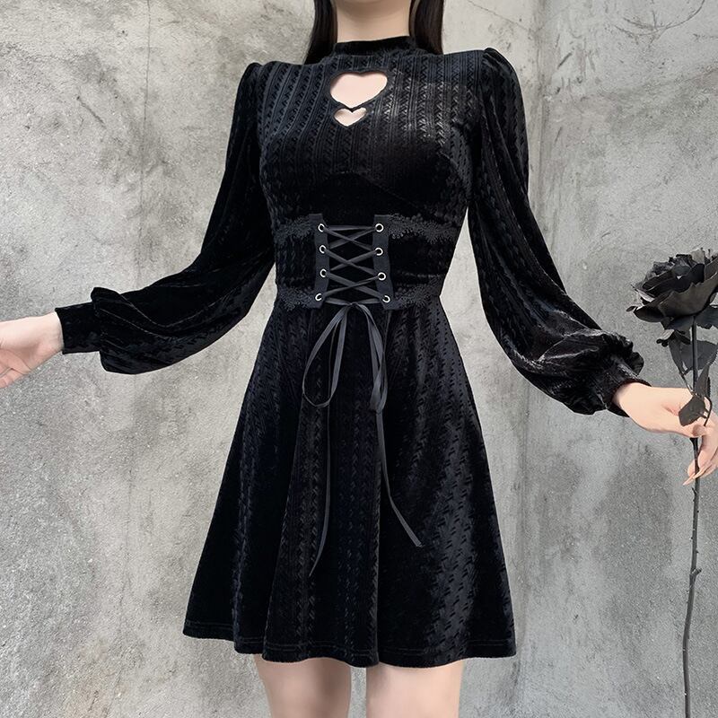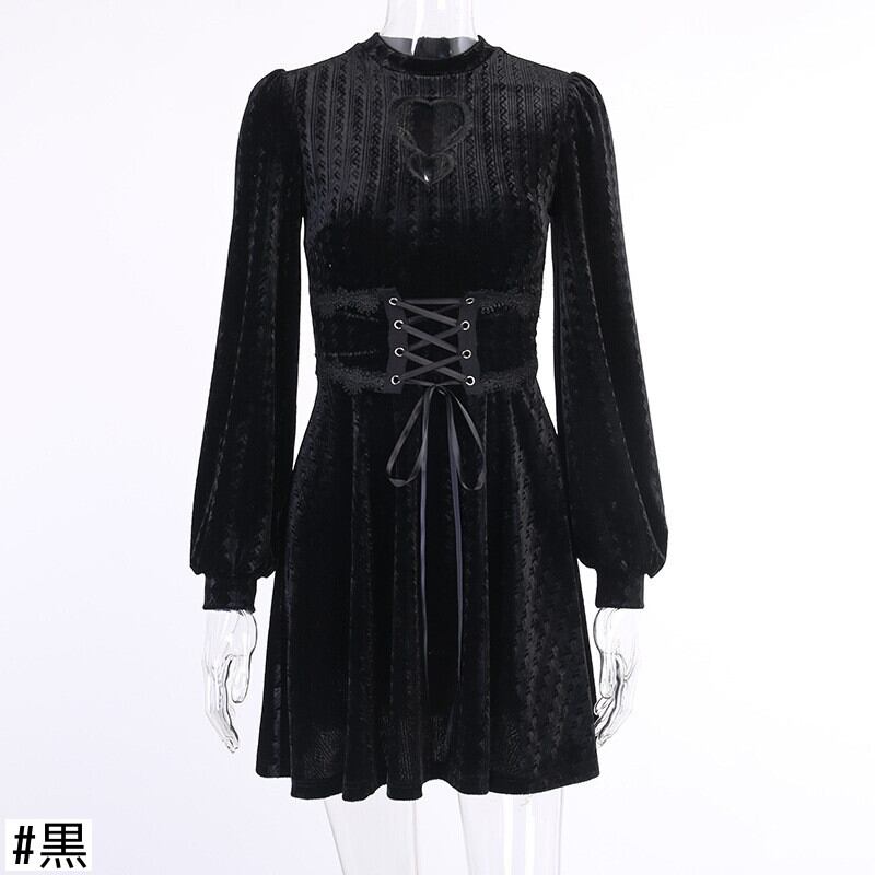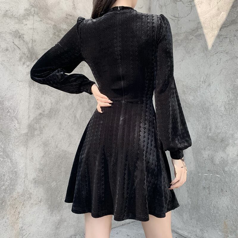 厚みブラックワンピーススタンダードウェストジッパー長袖スリーブ秋物ウィンターショート ロング レトロ オータム 冬物 スカート ウエスト YU50385472829