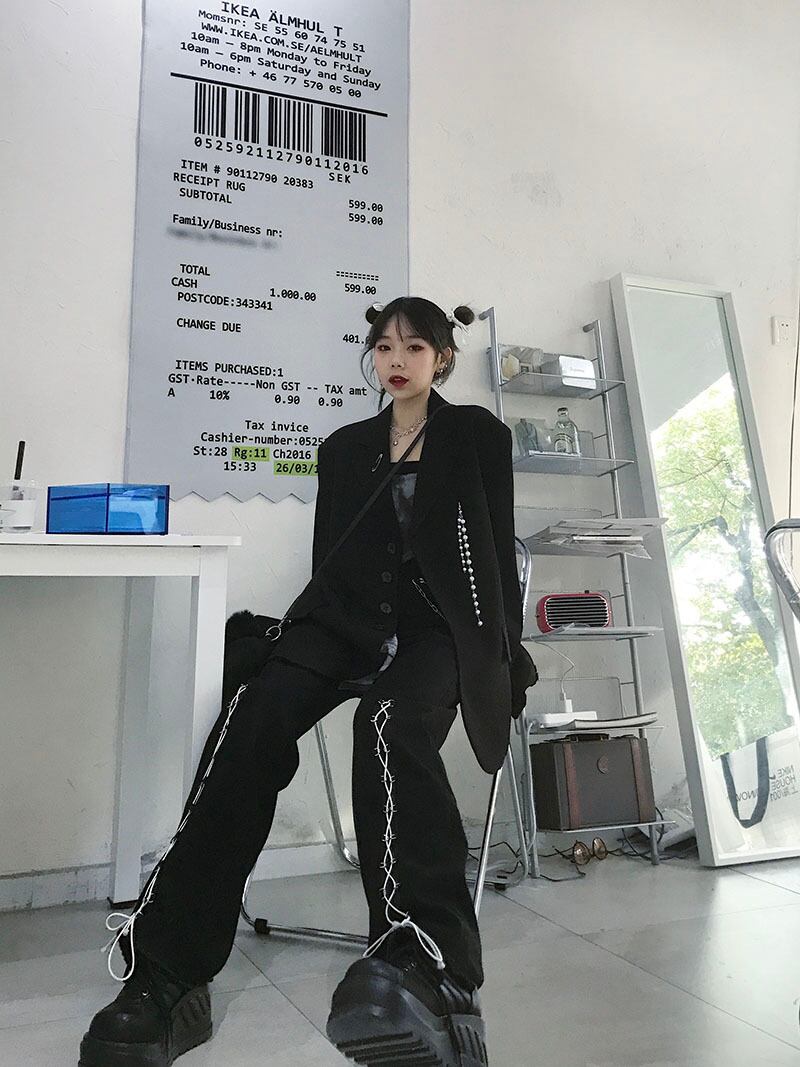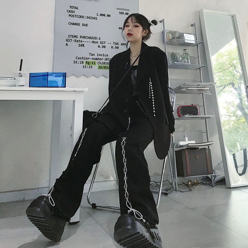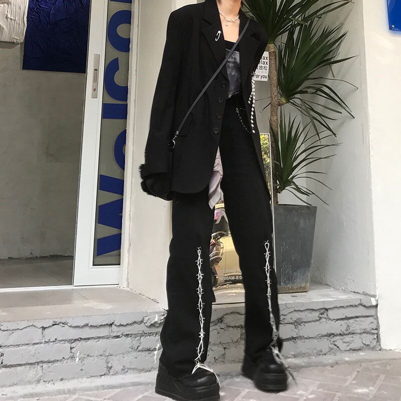 パンツ レディース秋物ウィンター韓国ファッショントレンドハイウェストウェストバンドワイドレッグルーズ薄手ジーンズ ストリート オータム 冬物 ワイドパンツ スタイル ウエスト デーモン97750933434