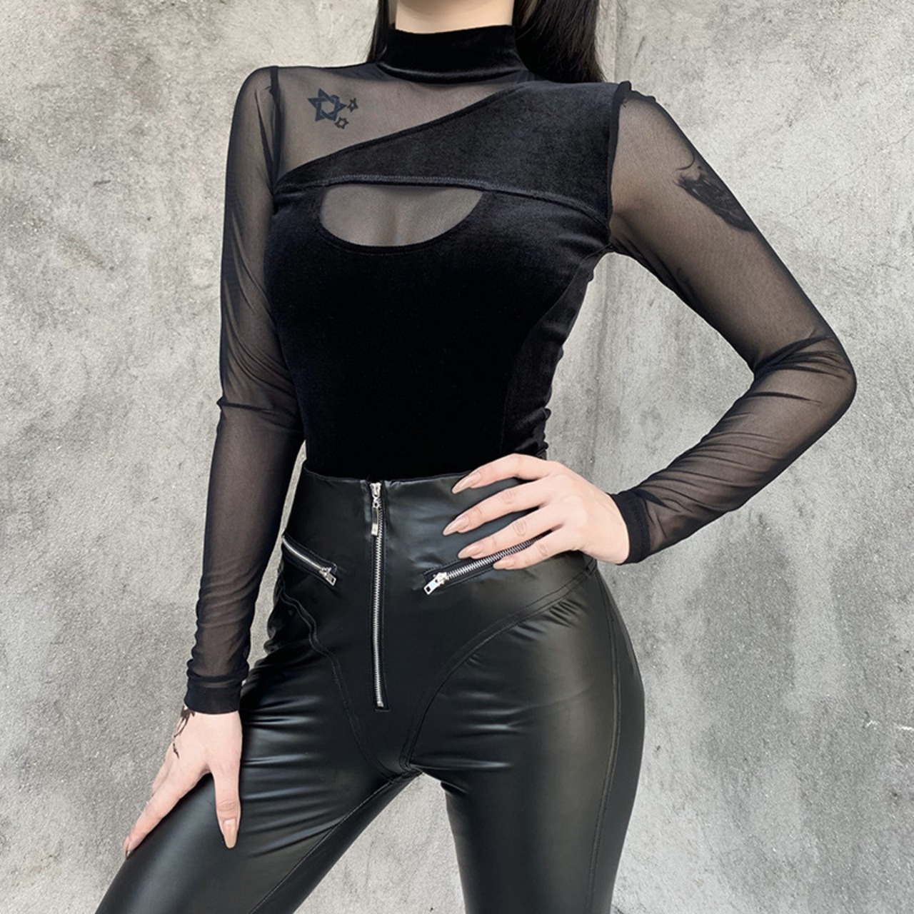 メッシュ長袖スリーブTシャツシャツ レディースバックジッパースリムスウェードゆったり ロング YU78222745457