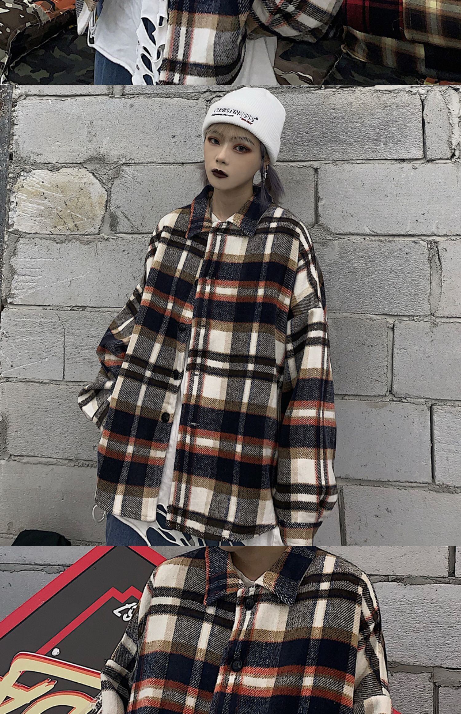 シャツ ジャケット レディース秋物ウィンター韓国ファッショントレンドルーズカジュアル格子柄 オータム 冬物 スタイル デーモン48701369665