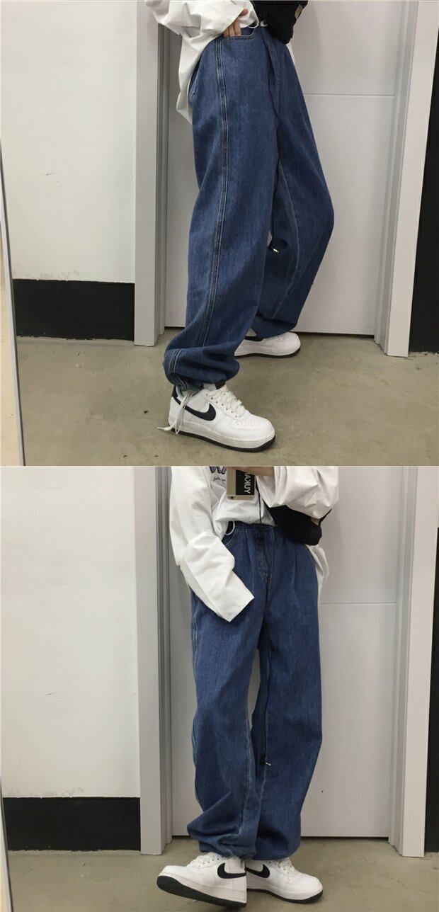 パンツ レディース秋物ウィンター韓国ファッショントレンドギャザージーンズ ルーズ薄手 ストリート オータム 冬物 ボーイズ スタイル デーモン270493049