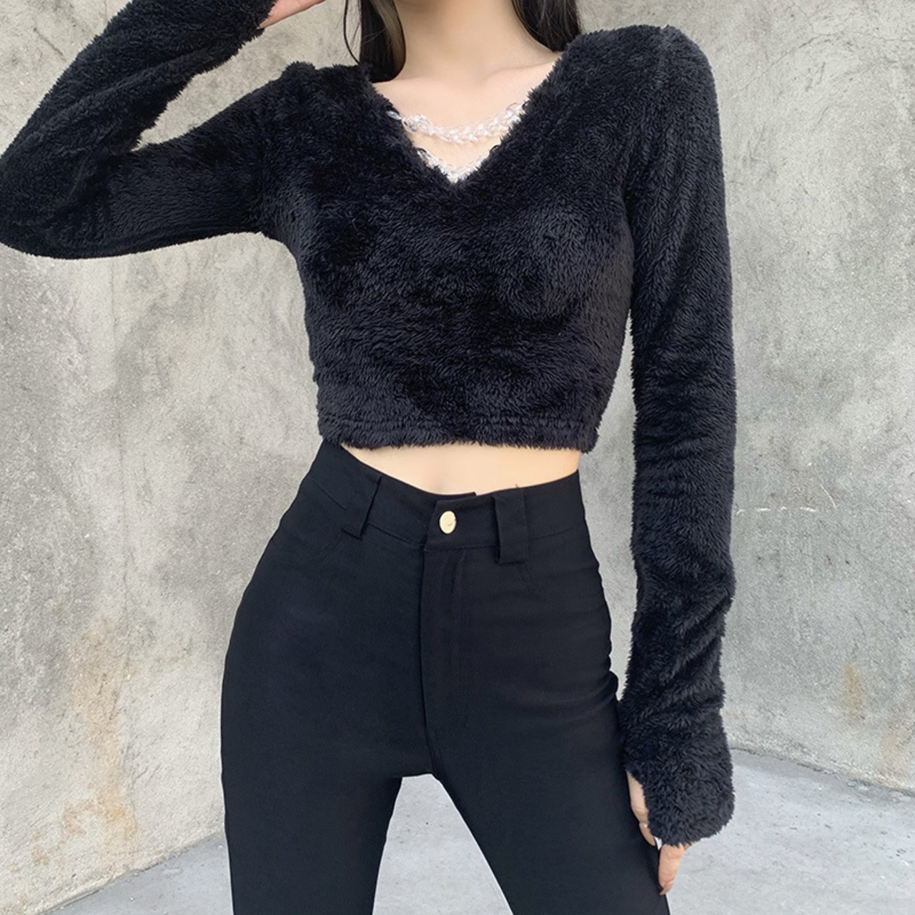 韓国ファッション秋物ウィンタースリムクロップドトップス レディーストレンドメタルチェーン オータム 冬物 ボーイズ スタイル YU5378742758