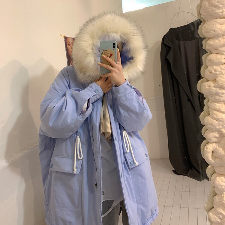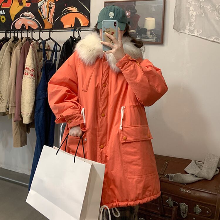 ジャケット ウィンター韓国ファッショントレンドルーズファーカラー コットン 冬物 スタイル ミドル丈 デーモン36161118550