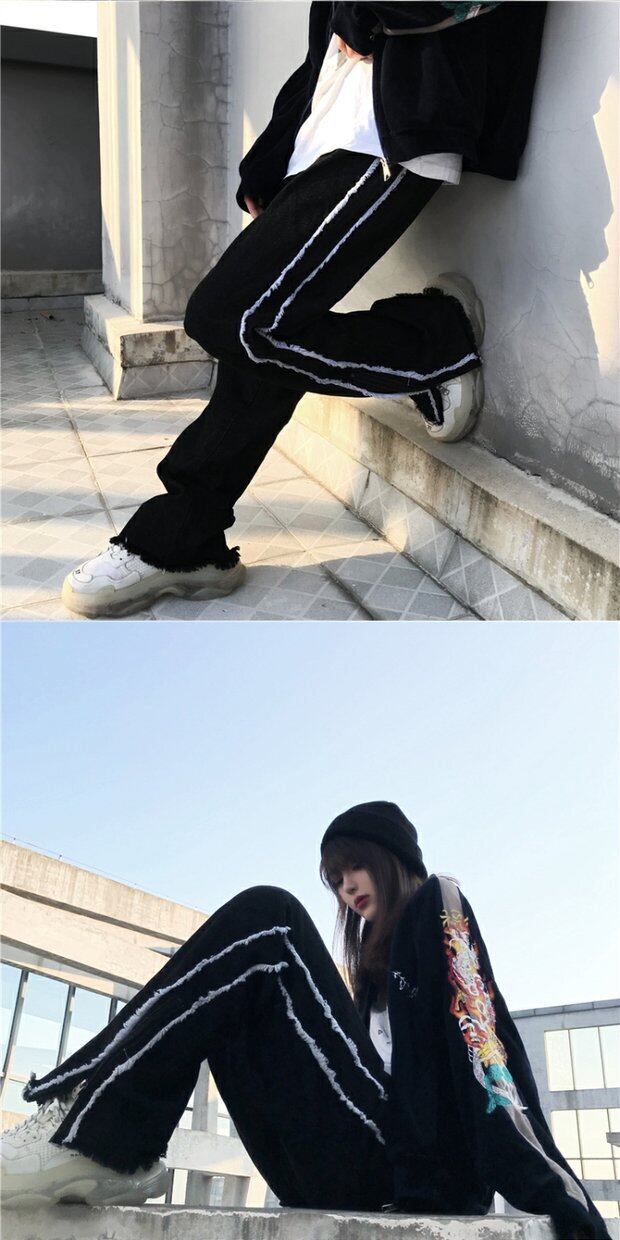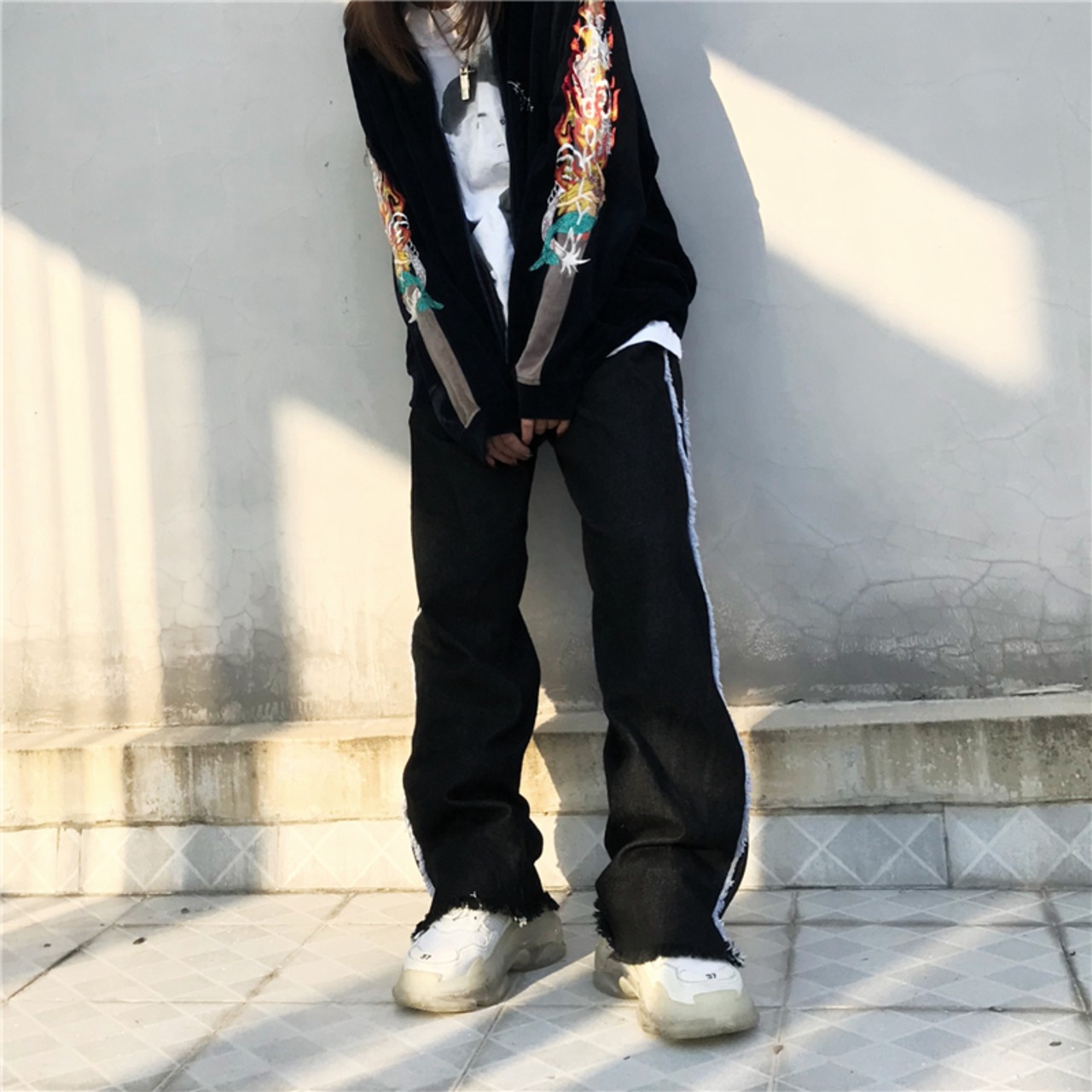 ウェストジーンズ 秋物ウィンター韓国ファッショントレンドルーズ薄手ワイドレッグパンツ オータム 冬物 ワイドパンツ スタイル ウエスト デーモン73991106758