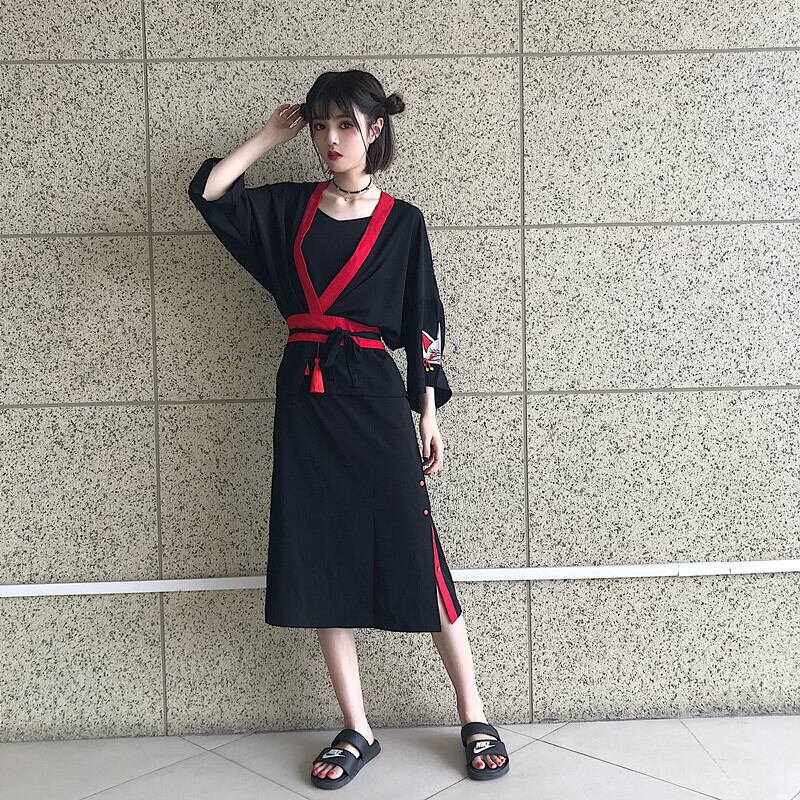 ダークきものスタイルヴィンテージルーズカーディガンジャケット レディース夏服 レッド 刺繍 夏物 ビンテージ CHIL69899694524