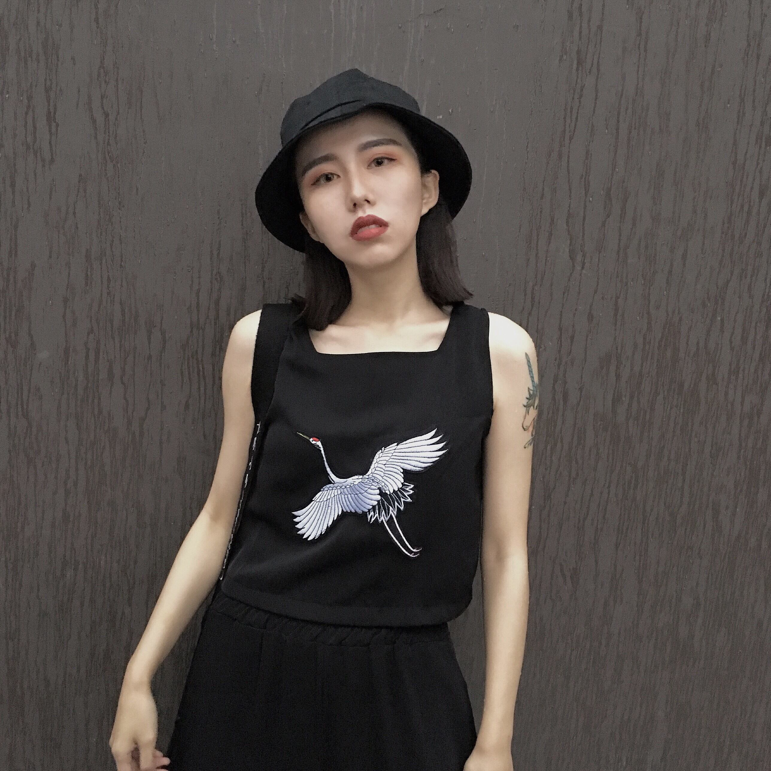 夏服スタンダードカラーホワイト刺繍ショートノースリーブトップス レディース レトロ 半袖 ハーフスリーブ 夏物 スクウェア CHIL77836797639