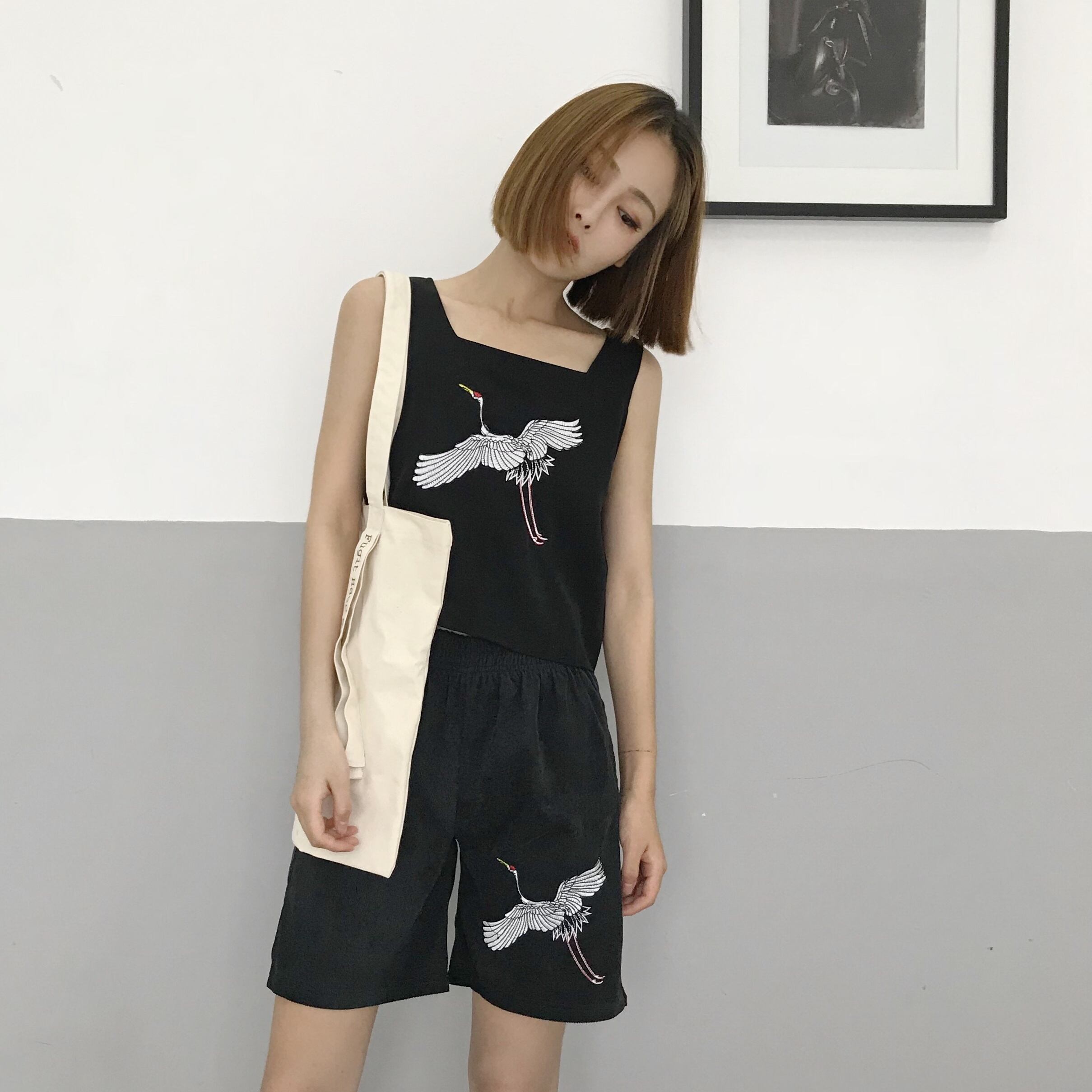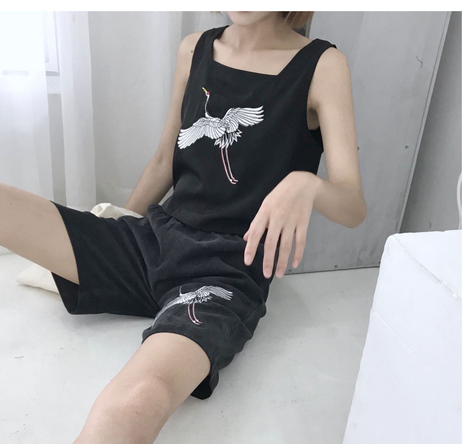 色:クレーン刺繡5点パンツ,スリーピング刺繍入り5点パンツ