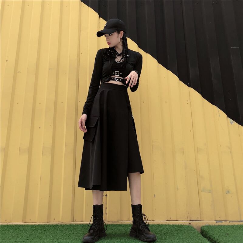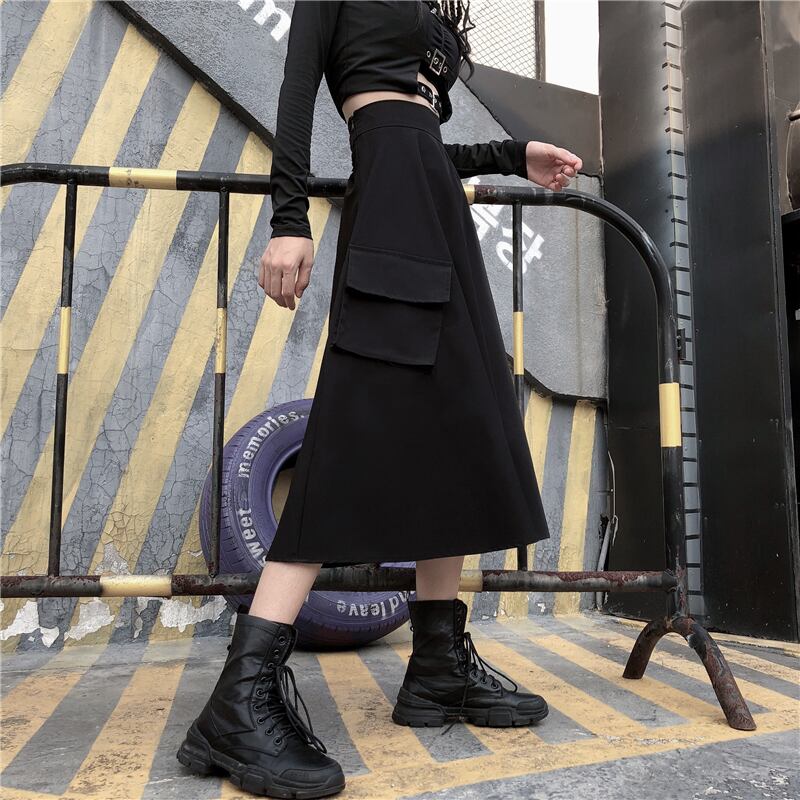 ダークロングスカート ルーズスタンダードAラインハイウェストウェスト レトロ ウエスト CHIL83907518314