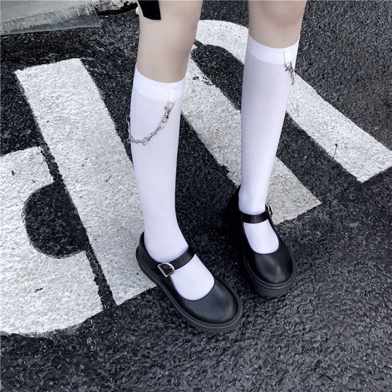 シングルスタイルブラックホワイトチェーン ソックス レディース タイツ ストッキング CHIL97441952465