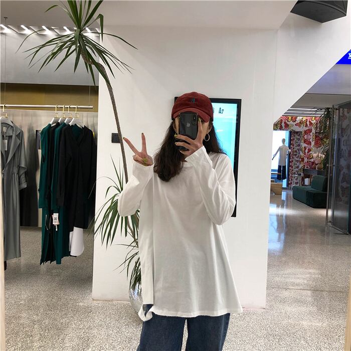 韓国ファッション秋物ラウンドネックソリッド カラーTシャツ ロング オータム Oネック ソリッドカラー スタイル 長袖 CHIL96620309037