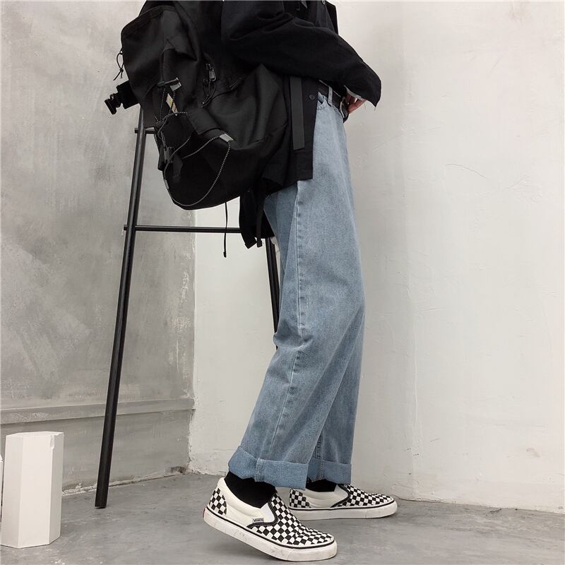 スプリング韓国ファッションジーンズ メンズレディースルーズカジュアルパンツ ハイウェストグレー 春物 スモーキー ウエスト CHIL82045210183