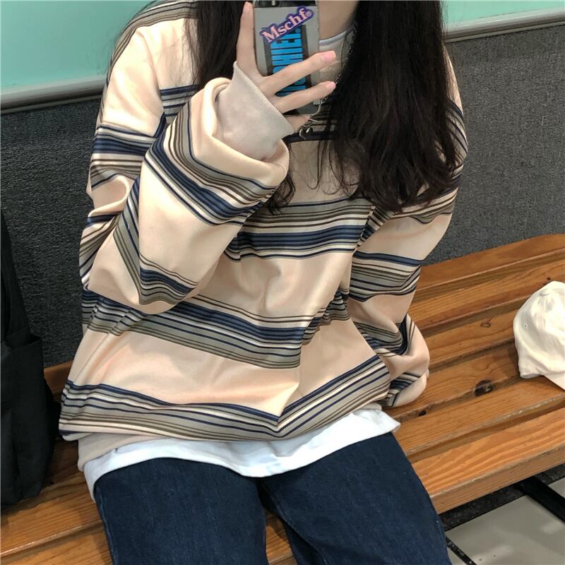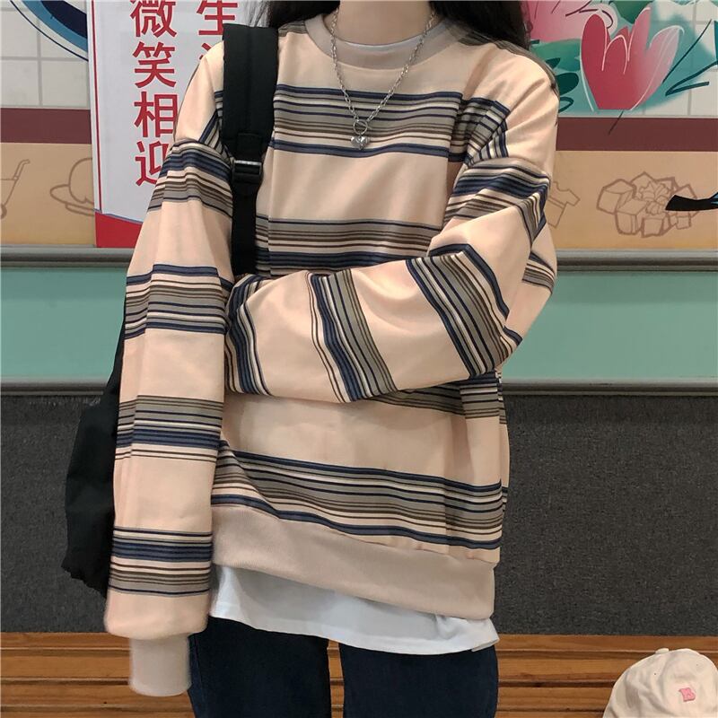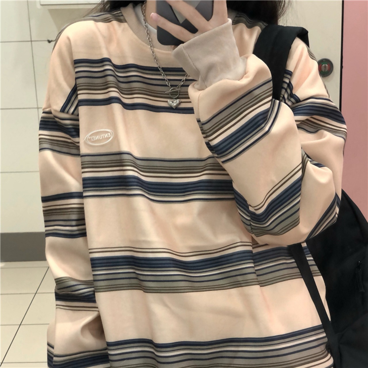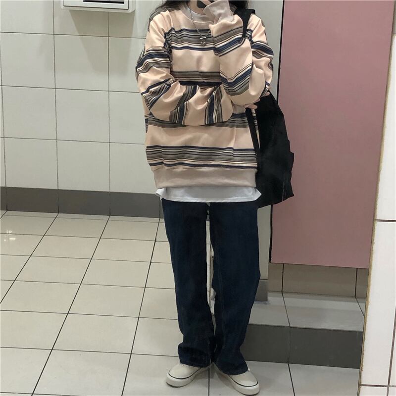 ストライプセーター レディース秋物ウィンター韓国ファッションルーズラウンドネックジャケット トレンドカジュアルプルオーバー オータム 冬物 Oネック スタイル CHIL67279859669