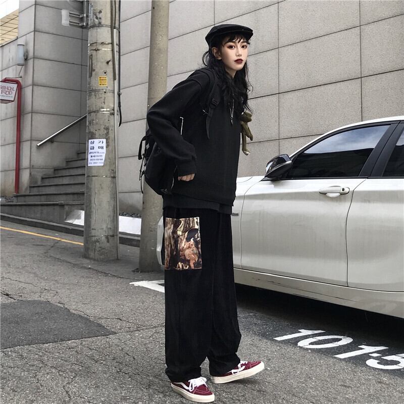 コーデュロイパンツ レディースメンズスプリングスタンダード韓国ファッショントレンドルーズハイウェストウェスト レトロ 春物 ウエスト CHIL86705289880