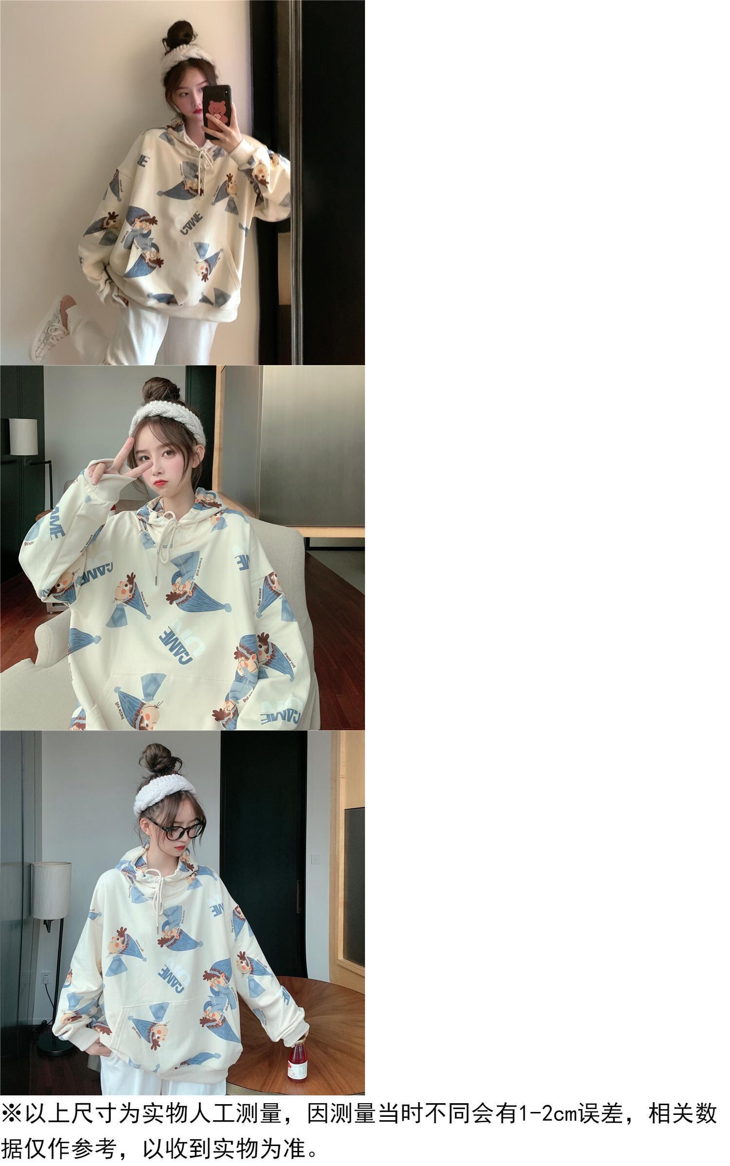 韓国ファッション秋物プリント柄ルーズスタイル薄手フードセーター レディース オータム ボーイズ CHIL12059798564