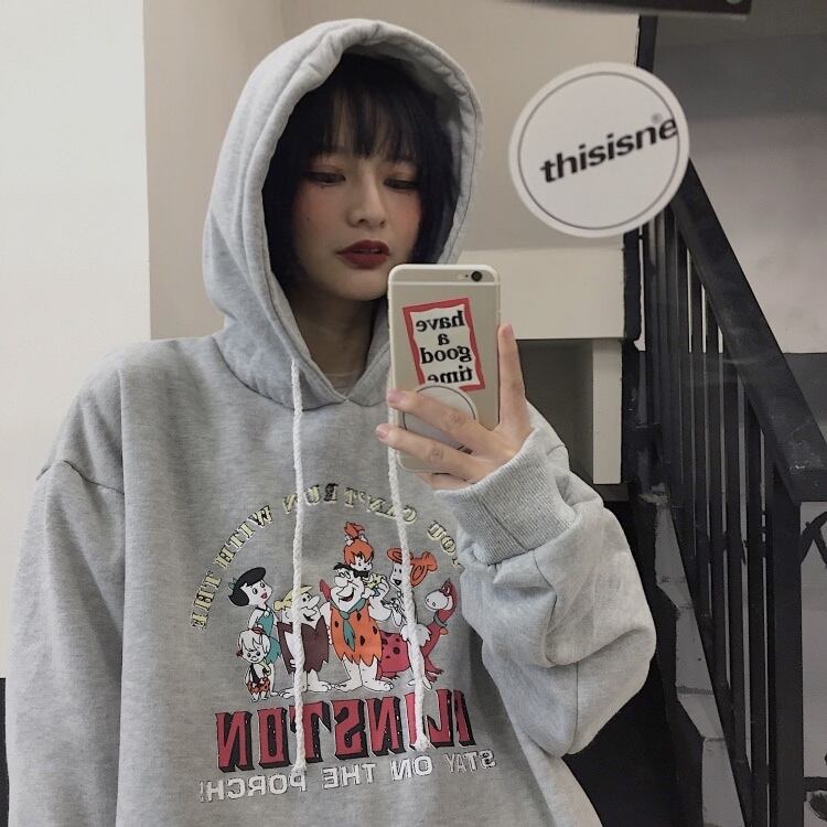 セーター 秋物ウィンター韓国ファッションスタイルプリントルーズフードジャケット レディース 原宿 オータム 冬物 CHIL11531993874