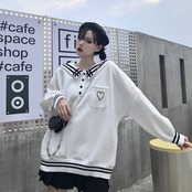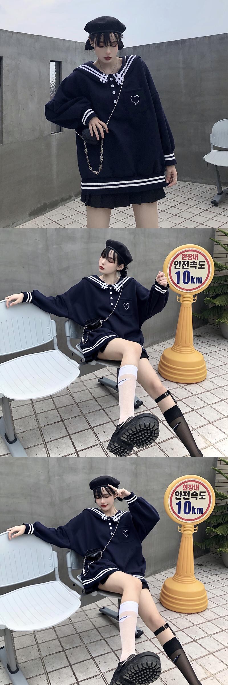 秋物ウィンターネイビーカラーポケット刺繍厚みスリーブプルオーバー トップス ランタンスリーブ オータム 冬物 CHIL39396637500