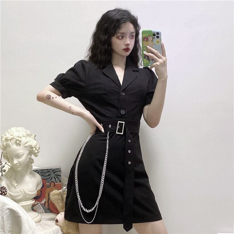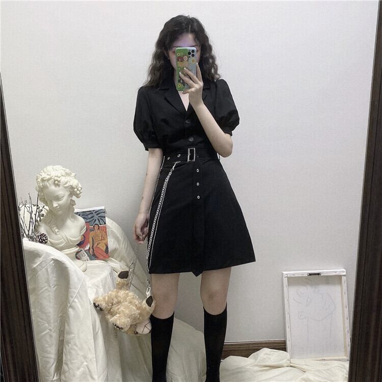 スカート レディース夏服韓国ファッションバックButterflyデザイン ウェストプリント半袖スリーブワンピースブラック ショート ハーフスリーブ 夏物 ウエスト CHIL78342918452