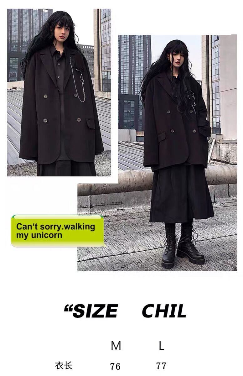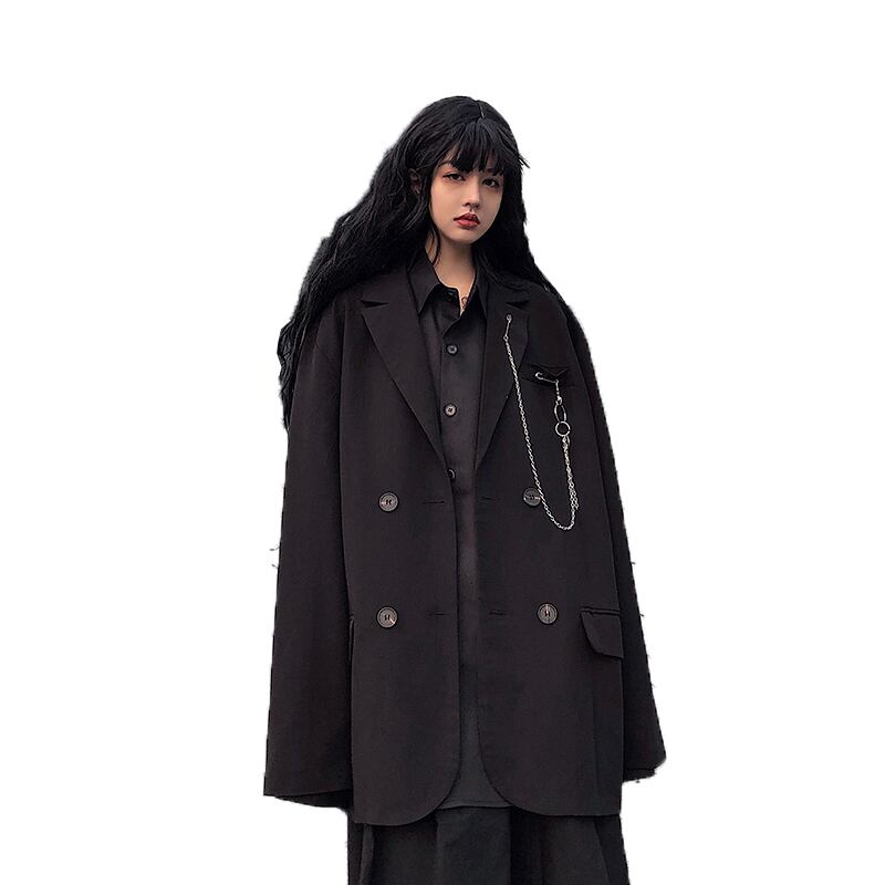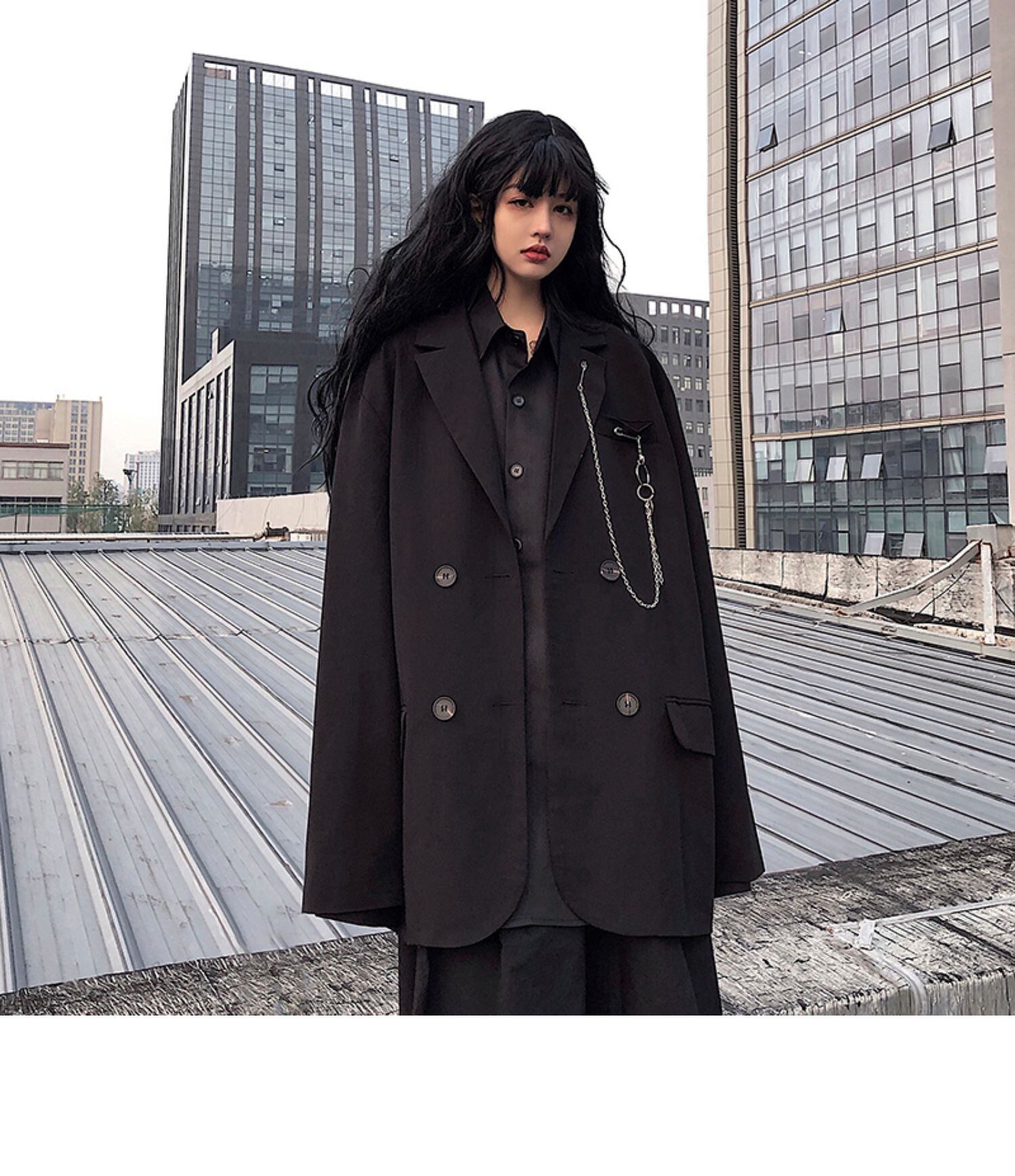 ブレザー 秋物トレンド韓国ファッションダブルブレストルーズカジュアル薄手トップス ロング オータム 長袖 CHIL43585236250