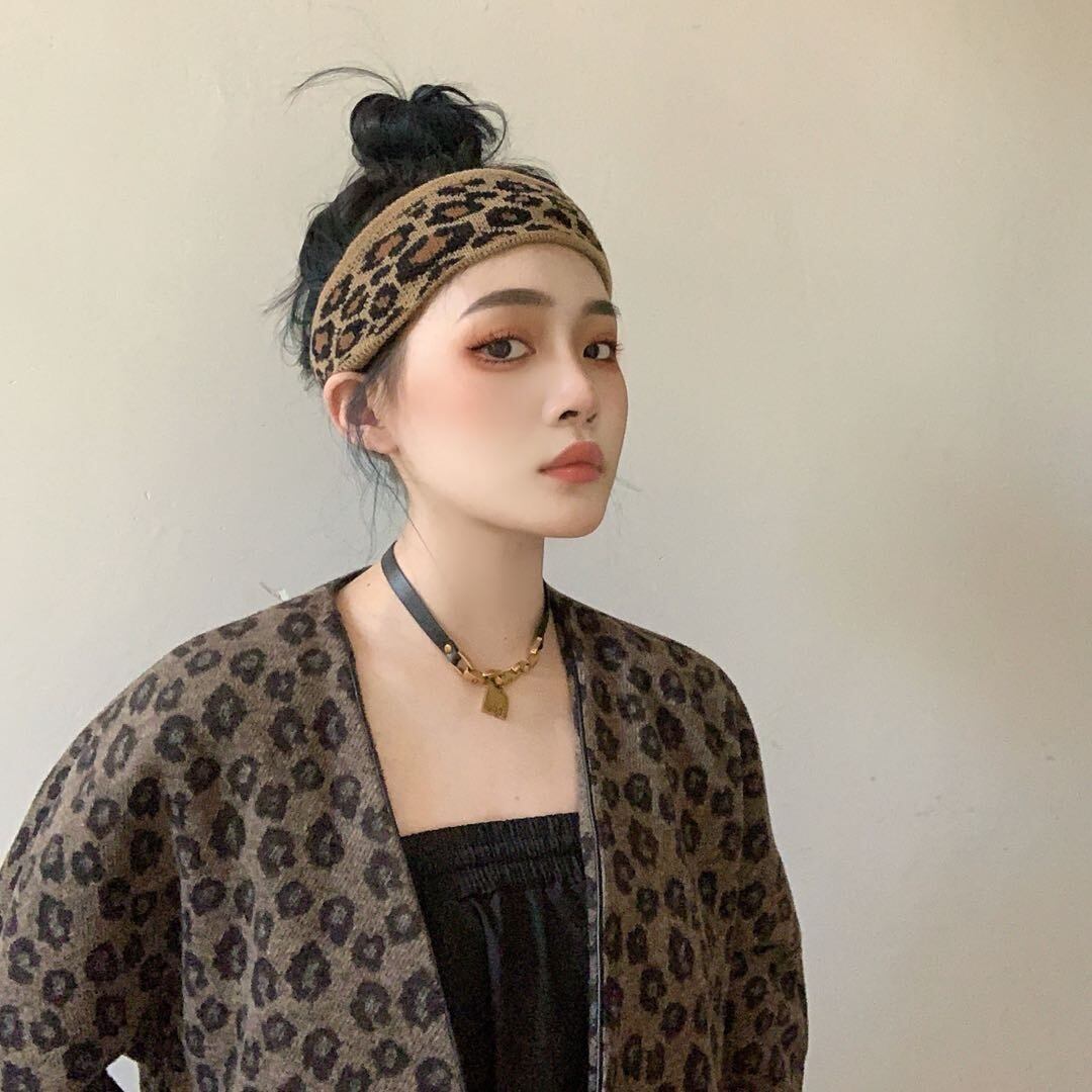 ワイルドニットウールレオパードプリント柄ヘアバンド スタンダードサイド レトロ 大人ガーリー スウィート キュート カジュアル ヘアアクセサリー CHIL27491245918