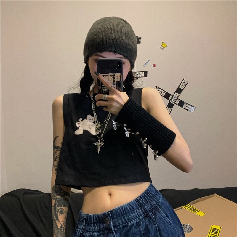 レディース夏服韓国ファッショントレンドスタンダードプリント柄ショートクロップトップ トップス レトロ 夏物 スタイル CHIL34336953997