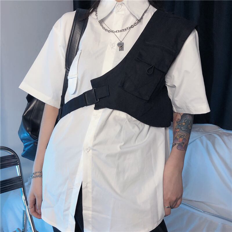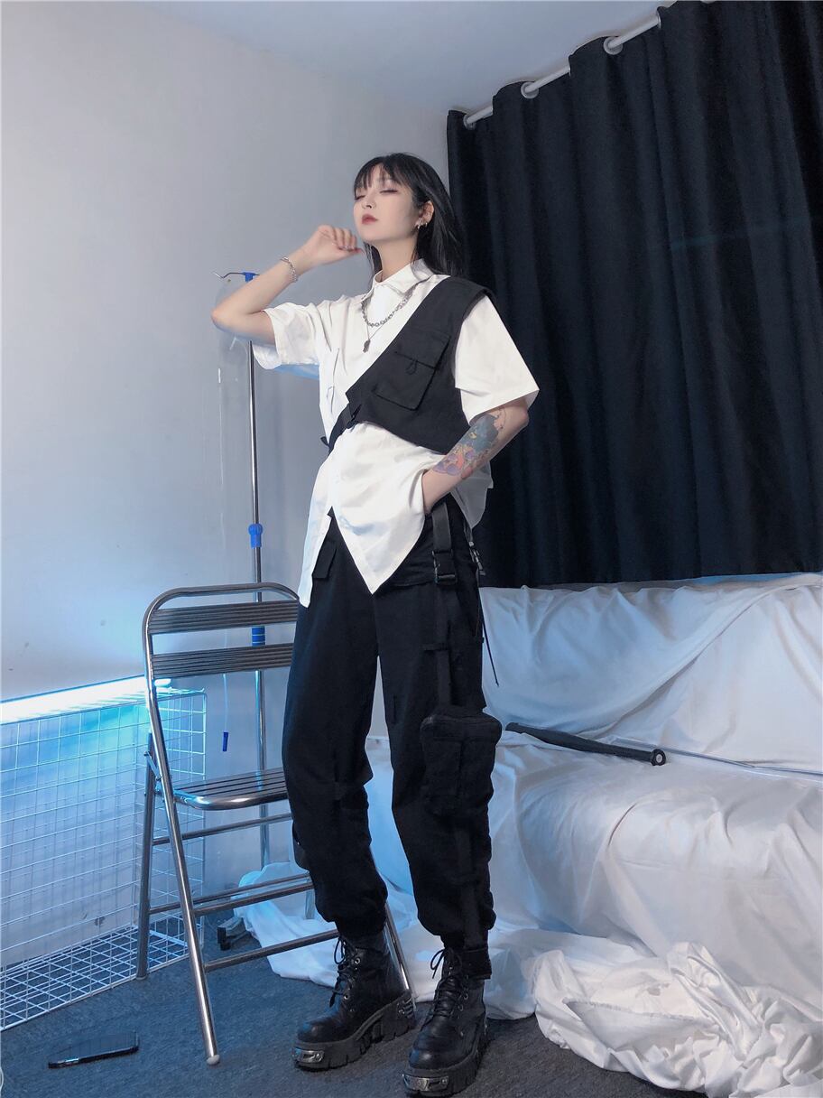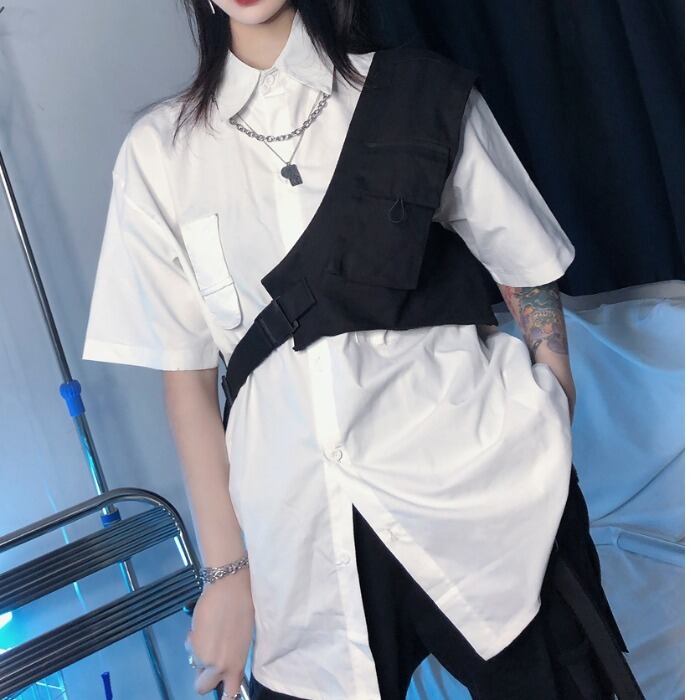 夏服ダークシャツ ルーズ 夏物 CHIL99023917987