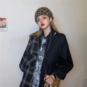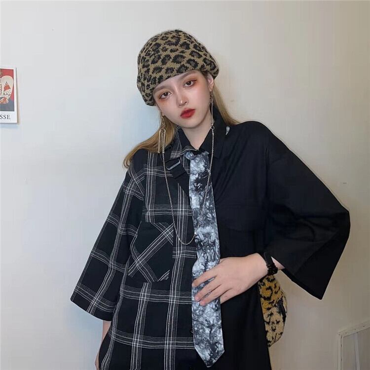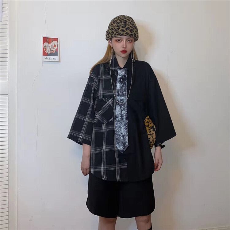 スタイルダーク格子柄ソリッド カラーシャツ ルーズジャケット 原宿 ソリッドカラー ステッチ CHIL26815351181