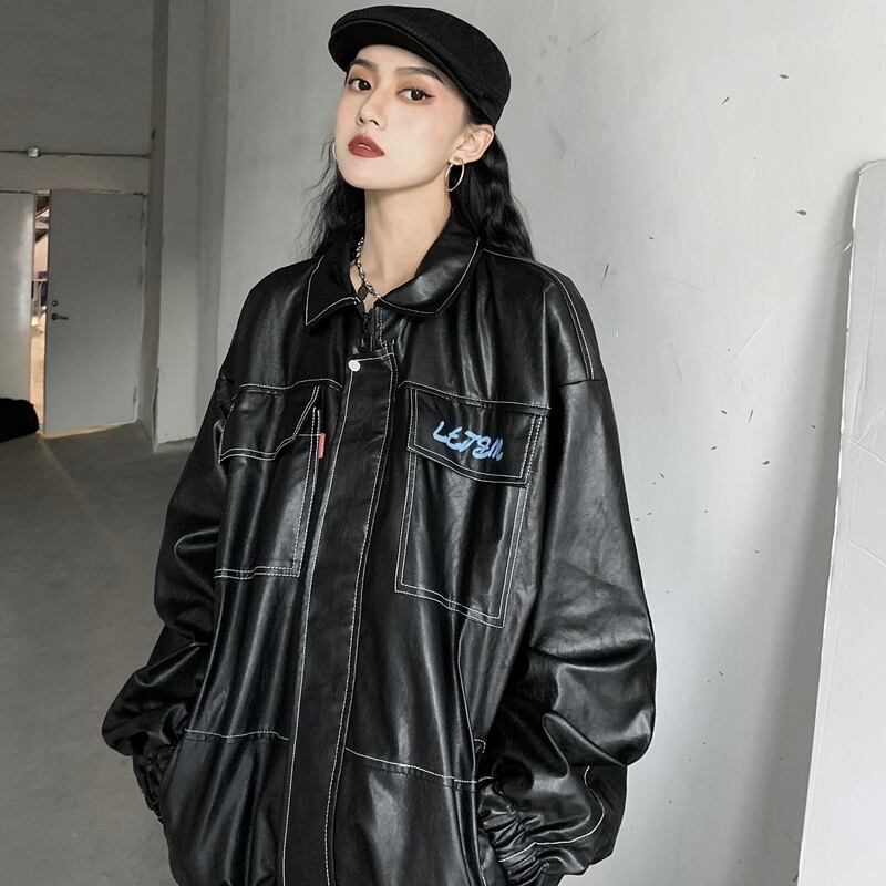 レザージャケット レディース秋物ウィンター韓国ファッションスタンダードトレンドルーズメンズブラック レトロ オータム 冬物 CHIL19611558736