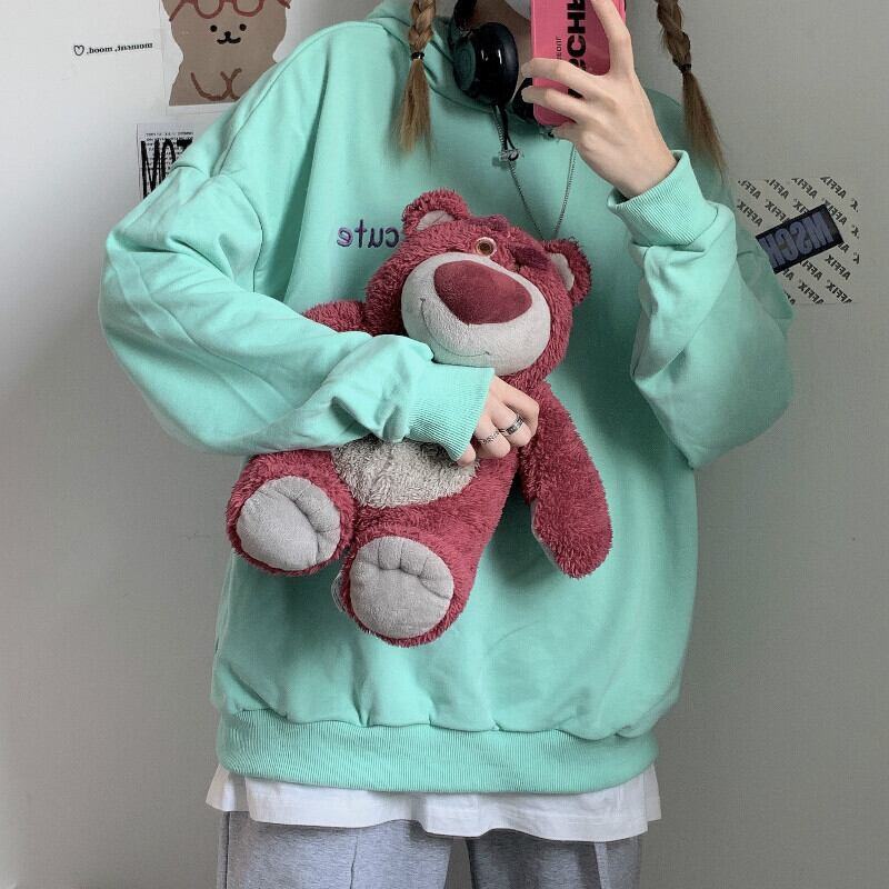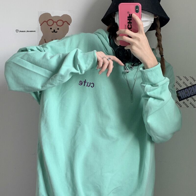 秋物韓国ファッショントレンドホワイトグリーンフードセーター オータム CHIL95767975802