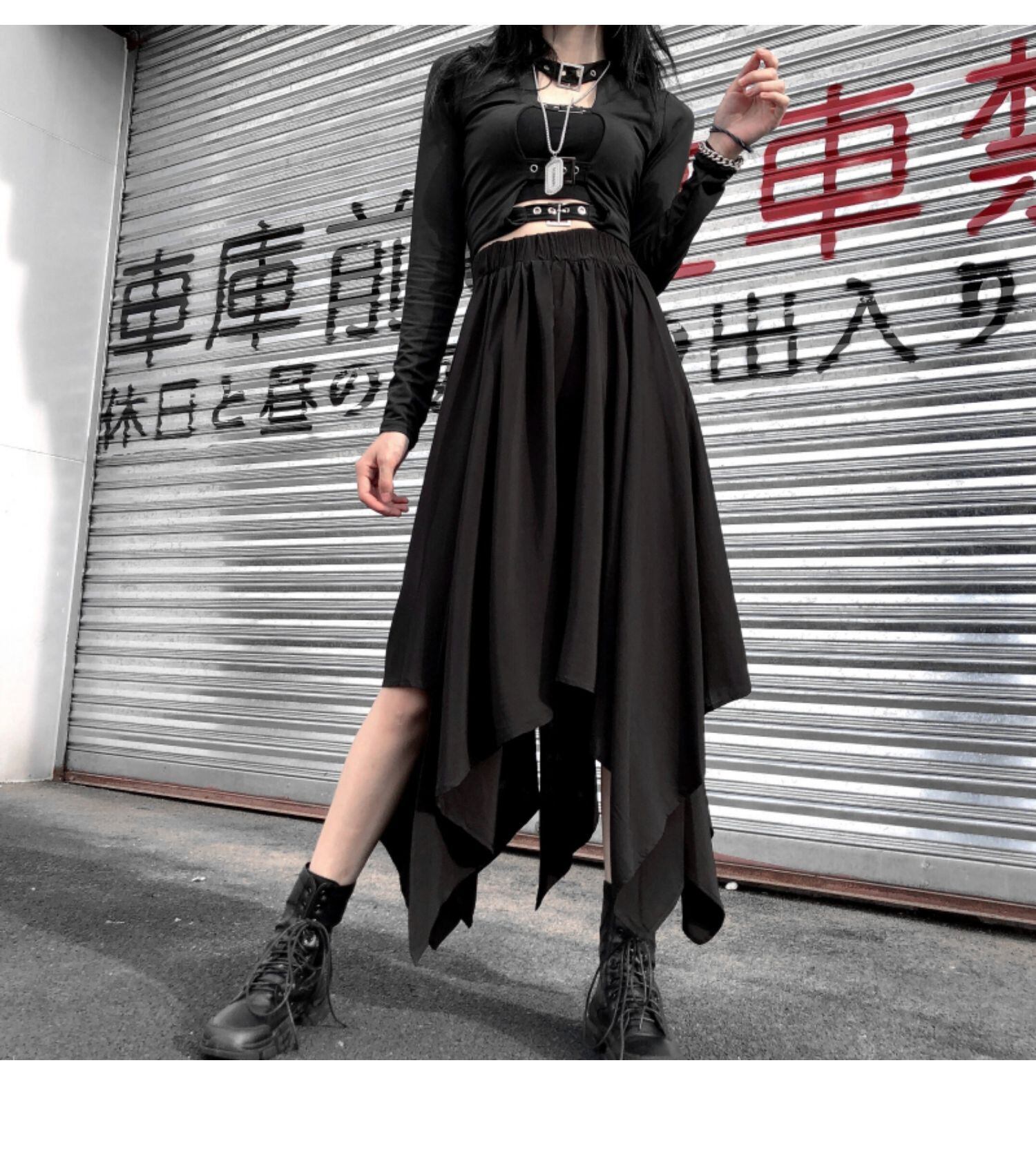 スカート レディース韓国ファッショントレンドハイウェストウェストダークカジュアルロング スタイル ウエスト CHIL83622555213