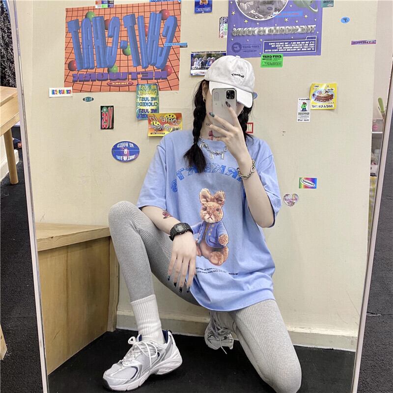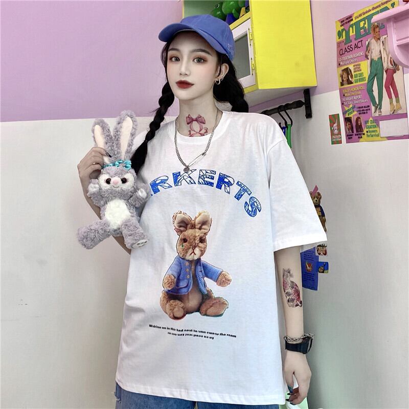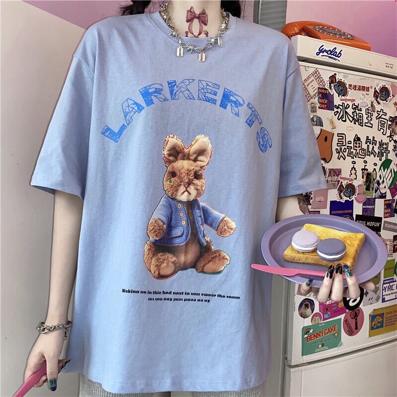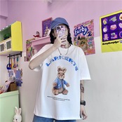 カラープリント柄ルーズTシャツレディーストップス トレンド コットン 大人ガーリー スウィート キュート カジュアル CHIL71174197322