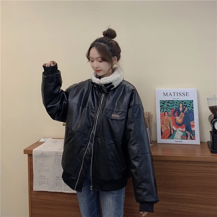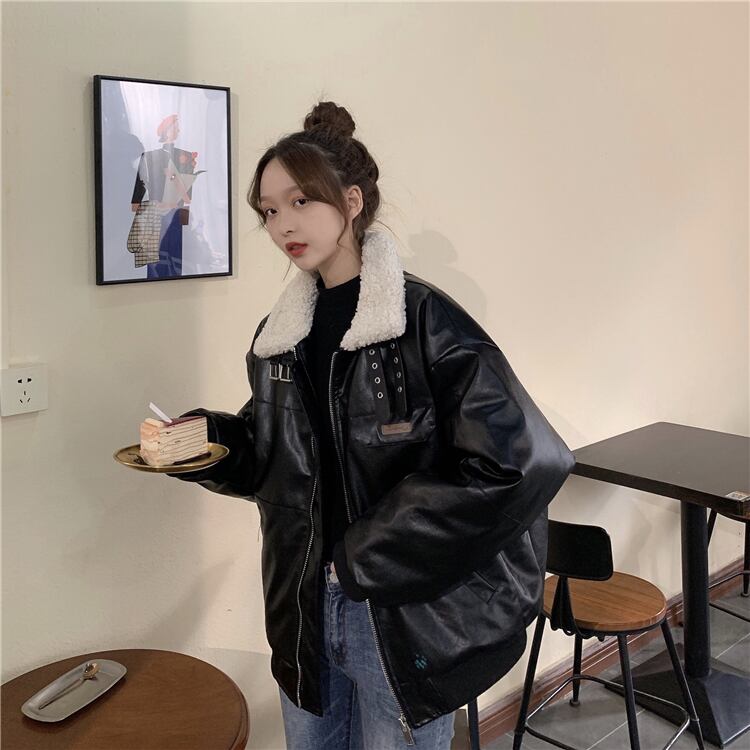 ウィンターレザージャケット レディース韓国ファッショントレンドカラールーズショート コットン 冬物 CHIL17433075789