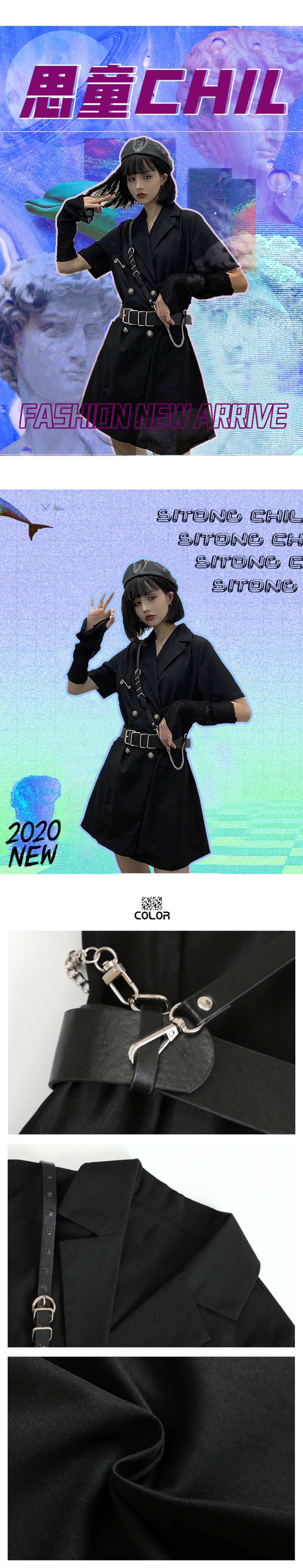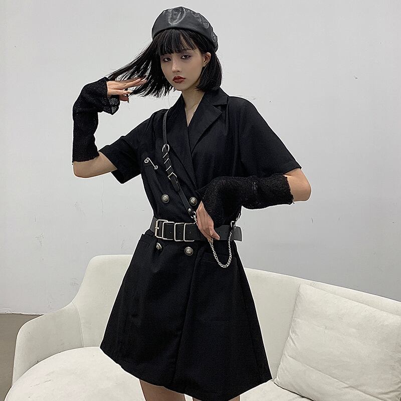 夏服ダークトレンドメタルダブルブレストミニ ワンピースワンピースジッパーブラックレディース 夏物 CHIL29397121590